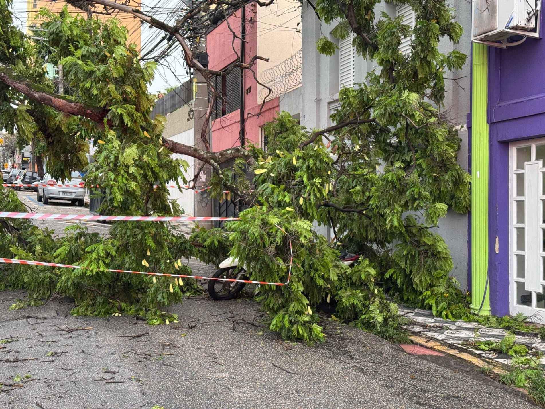 Uma árvore caiu na rua Professor Toledo, na altura do número 264, no centro de Sorocaba. O incidente ocorreu após um forte temporal atingir a cidade na tarde desta segunda-feira (12). A árvore atingiu um veículo que estava estacionado e uma motocicleta que se encontrava do outro lado da via. Ninguém ficou ferido.