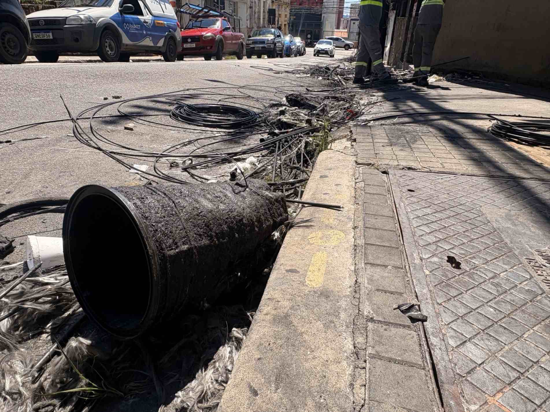 Energia é restabelecida após incêndio em rede de cabos na rua Arthur Martins
