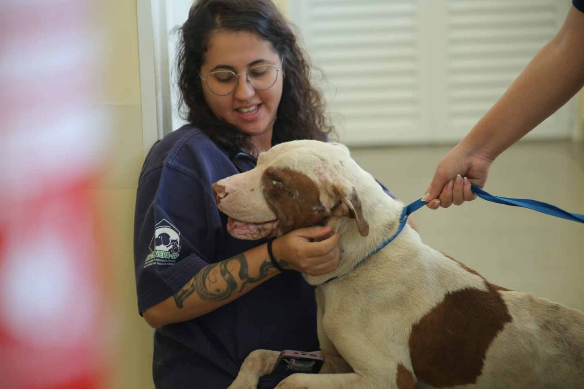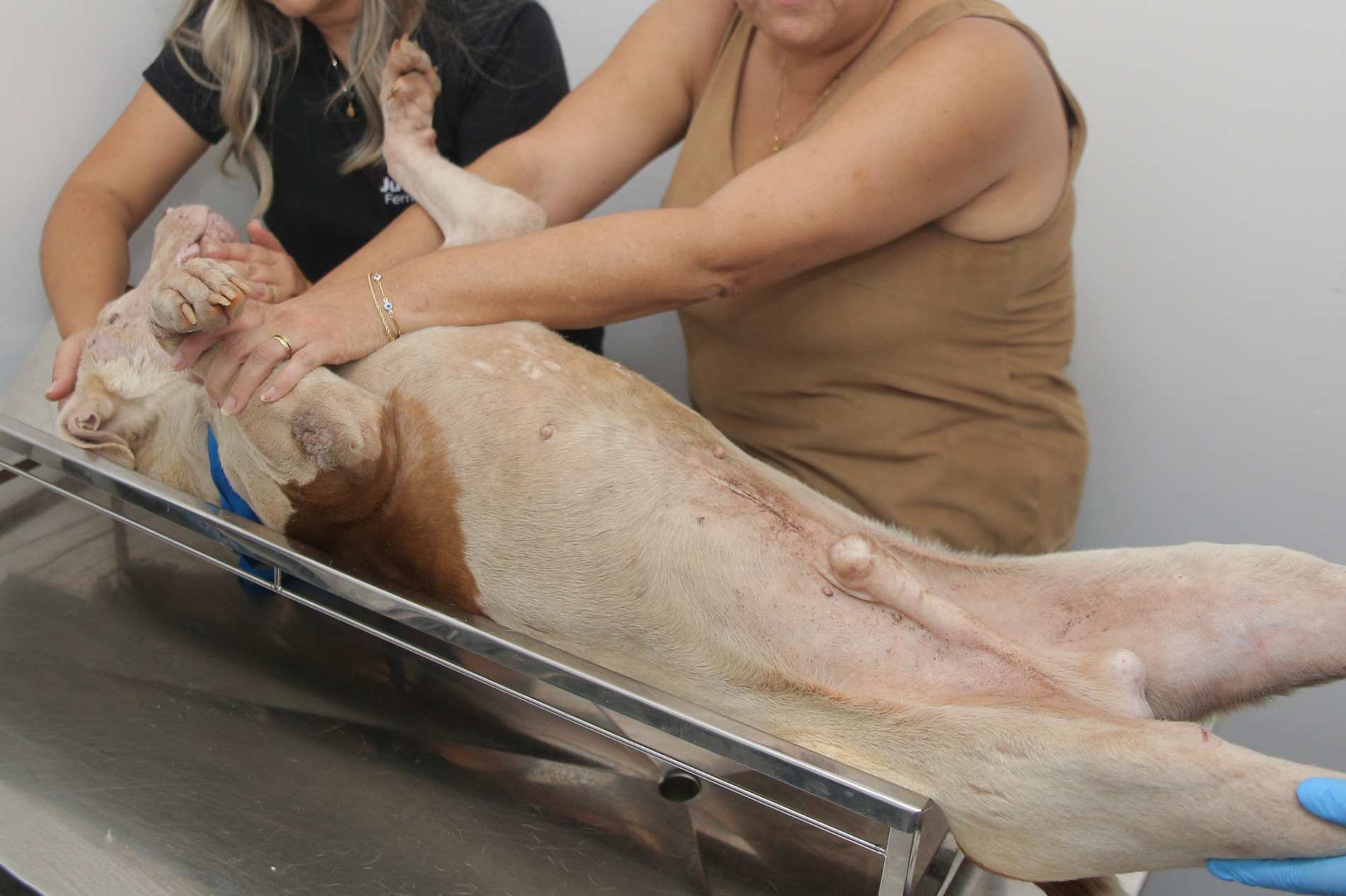 Animal resgatado após agressão no bairro Santa Marta passa por exames e segue em recuperação