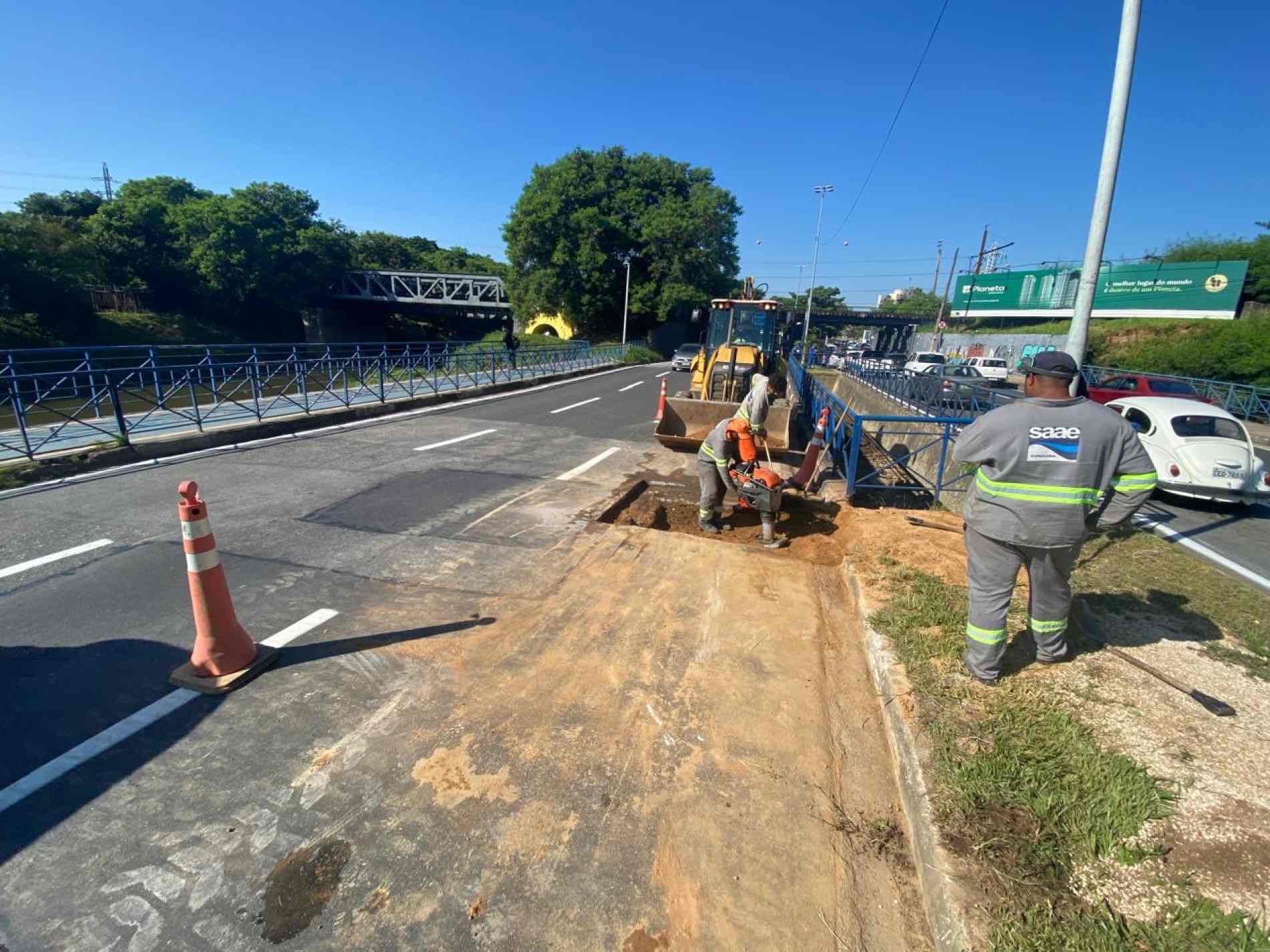 As equipes do Serviço Autônomo de Água e Esgoto (SAAE) realizam reparos desde cedo no local. A área está sinalizada e, apesar da interdição de uma das faixas, não havia registros de congestionamento, o trânsito fluía normalmente nas primeiras horas da manhã do sábado.