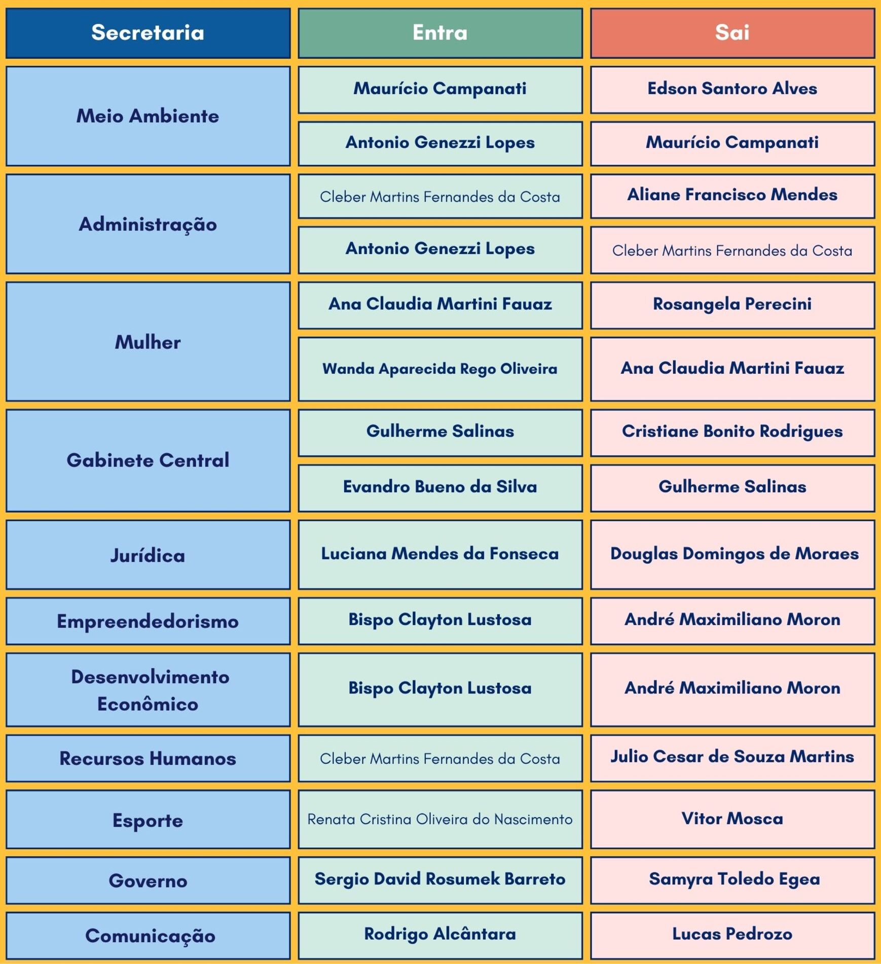 Com as duas alterações confirmadas, já são 15 mudanças desde que Rodrigo Manga retornou à prefeitura. (Da Redação)