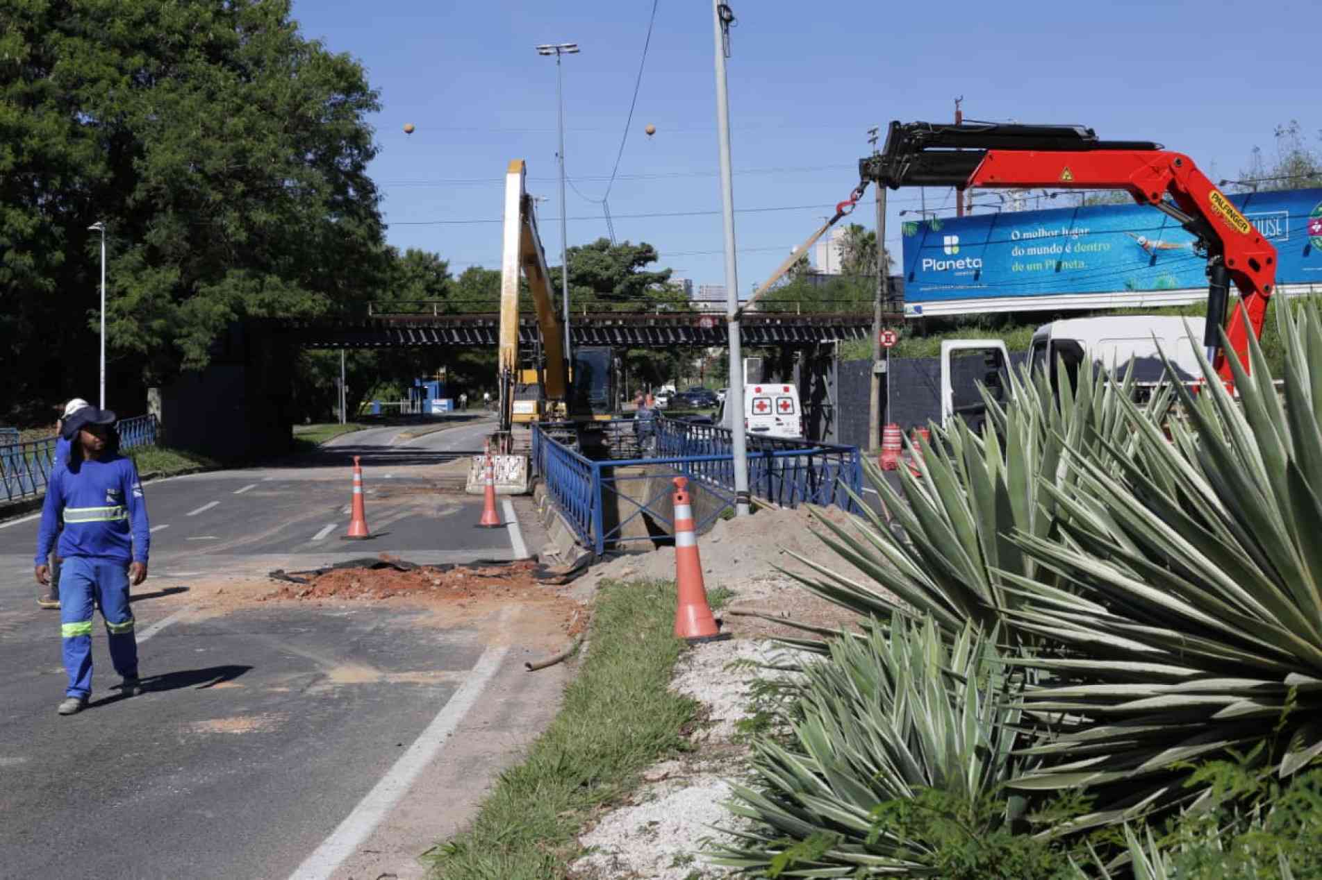 Uma manutenção emergencial é realizada em uma travessia localizada na avenida Dom Aguirre, no sentido Centro, nas proximidades do pontilhão da linha férrea, ao lado da antiga Usina Cultural. Houve um afundamento no solo, próximo a base da ponte.