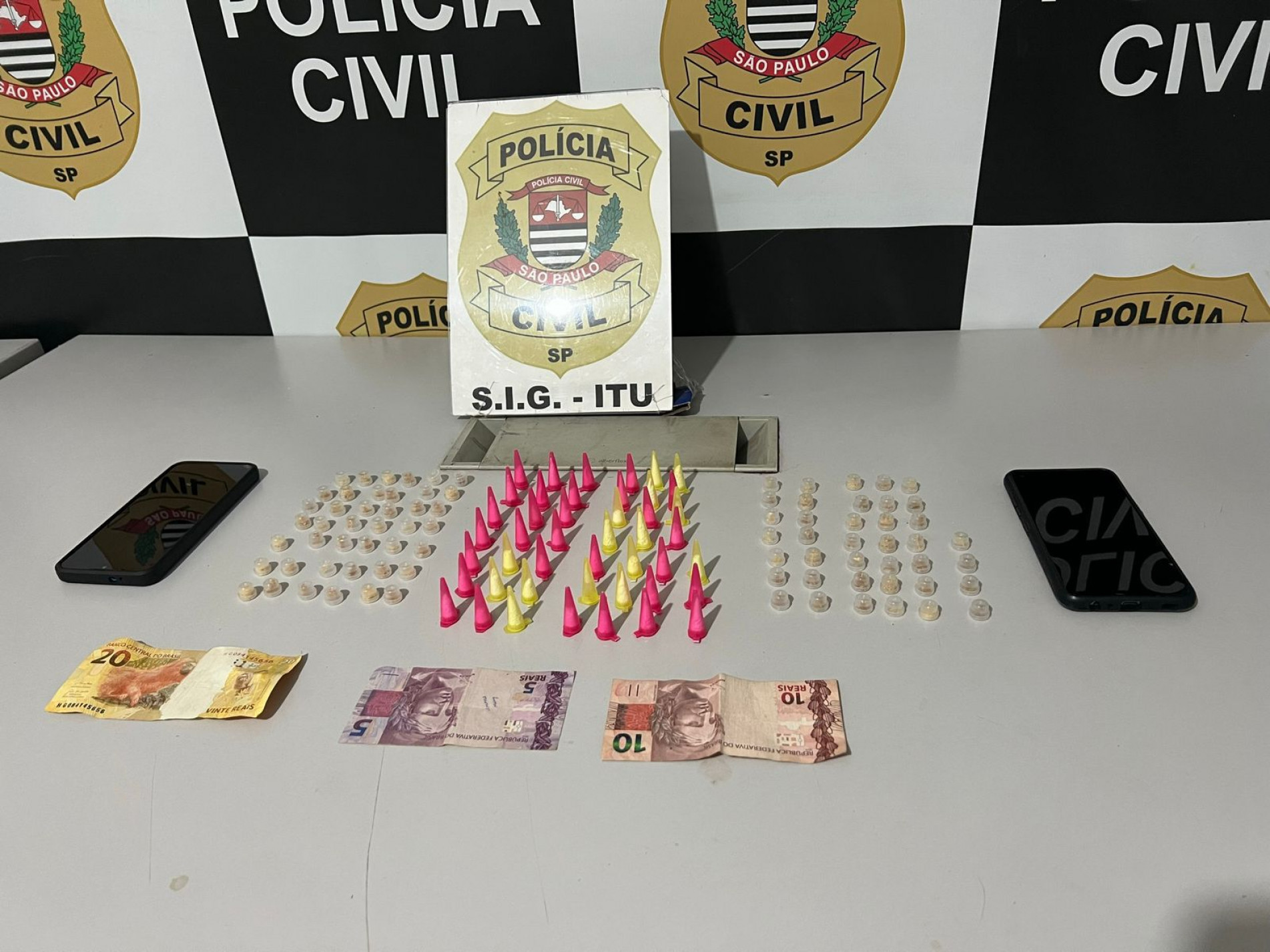 A Polícia Civil de Itu prendeu em flagrante um rapaz, de 19 anos, e apreendeu um adolescente, de 16 anos, por tráfico de drogas. Ambos foram capturados no bairro São Judes Tadeu, na terça-feira (16). Com eles, foram apreendidas quase 130 porções de entorpecentes, entre cocaína e crack, dinheiro e celulares.