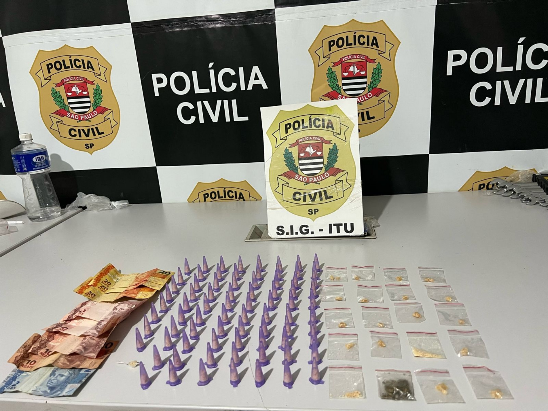 A Polícia Civil prendeu um adulto e apreendeu um jovem menor de 18 anos no Jardim das Indústrias, durante operação realizada na madrugada de sexta-feira (26). A ação teve início após informações indicarem que um ponto de drogas na região seria abastecido. No local, os policiais encontraram dois jovens em atividade suspeita. Durante a abordagem da dupla foram encontradas porções de drogas e dinheiro. No total a equipe apreendeu 97 porções de crack, 1 de maconha e R$ 102,00 em dinheiro.