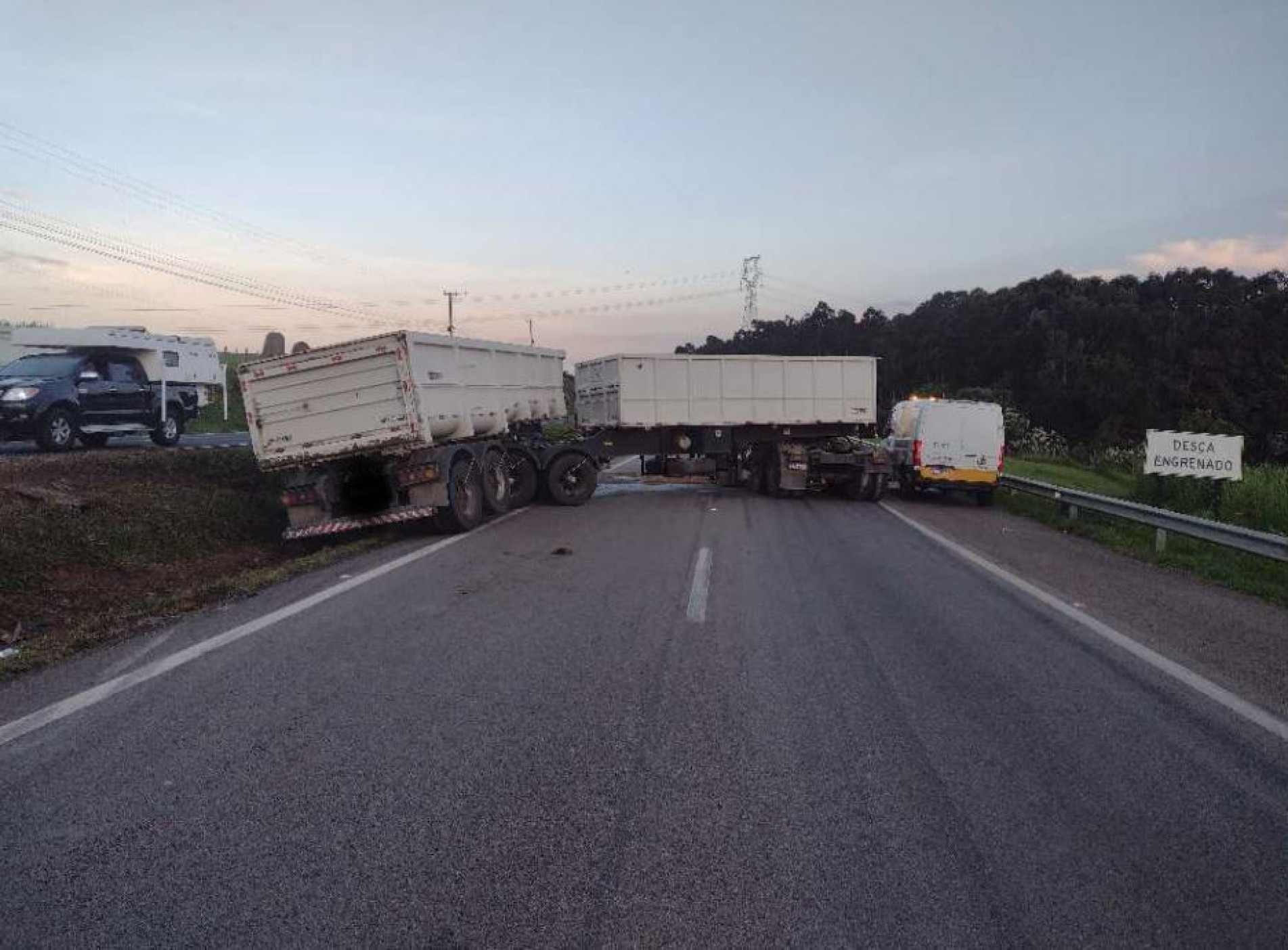 A via foi interditada e foram registrados dois quilômetros de congestionamento. Por quase duas horas, as equipes da Polícia Militar Rodoviária e concessionária realizaram manobras para realinhar a carreta na pista.