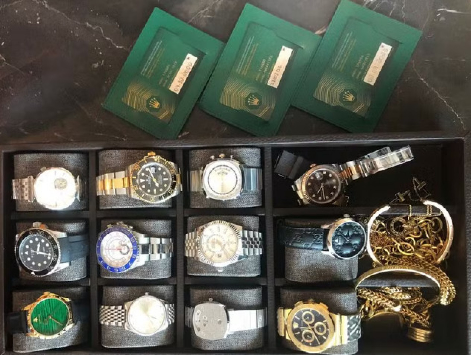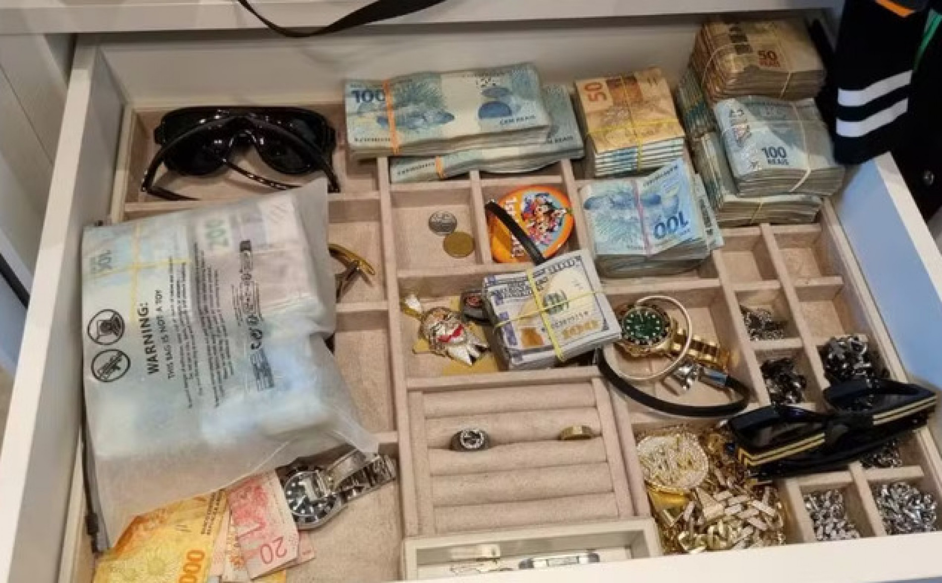 Em imagens disponibilizadas pela instituição policial mostram relógios, carros de luxo, e dinheiro encontrados em locais dos mandados.
