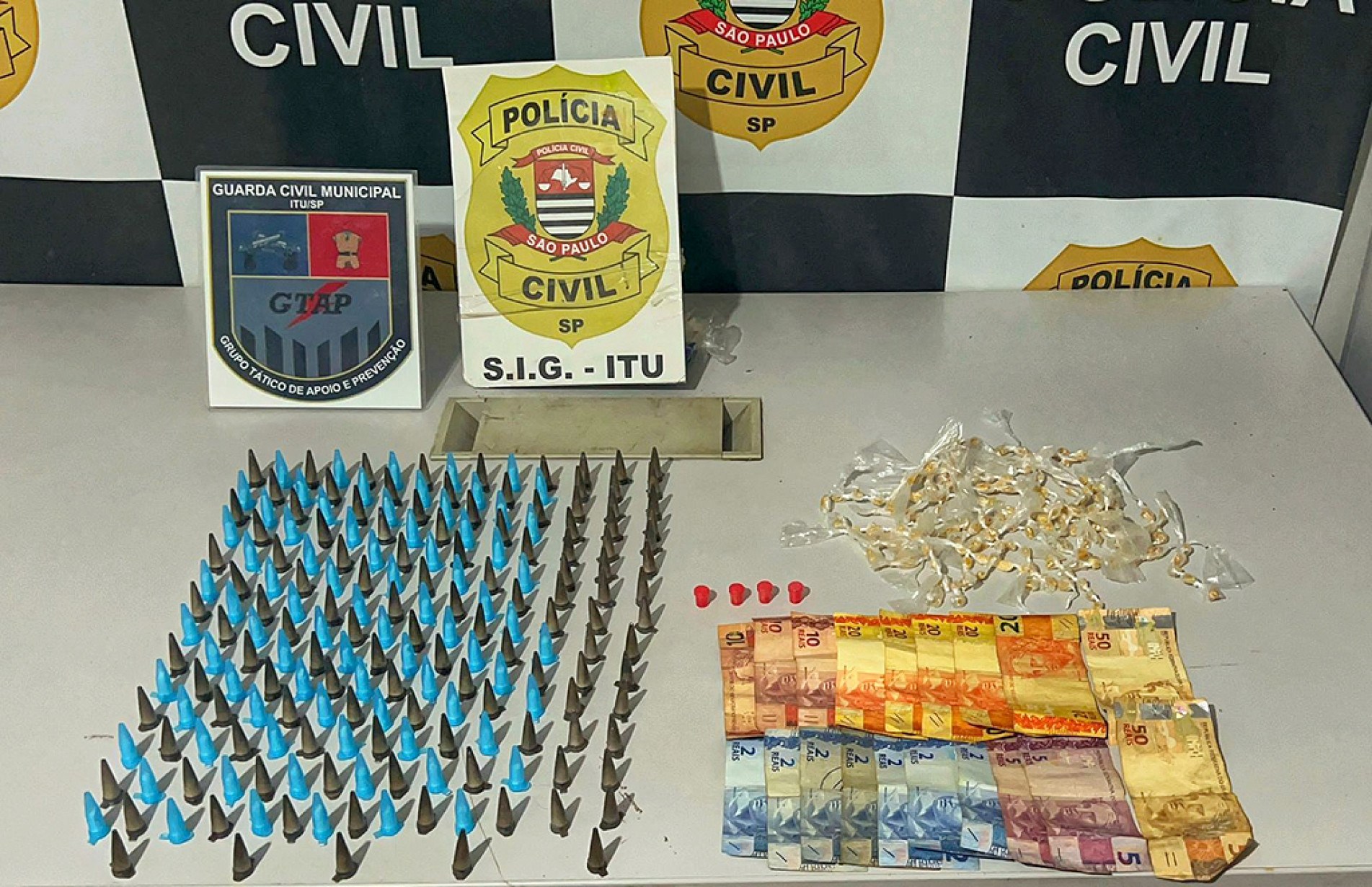 Ainda na terça-feira (28), dois homens foram presos e um adolescente apreendido pela Polícia Civil, no bairro São Judas, em Itu, com 201 porções de cocaína e 190 de crack. O trio praticava o comércio ilícito em uma praça, quando foi surpreendido pelos policiais. Um dos suspeitos tentou fugir em direção a um estabelecimento comercial, mas foi alcançado e detido. Durante a revista, foram encontradas porções de crack e dinheiro com ele.