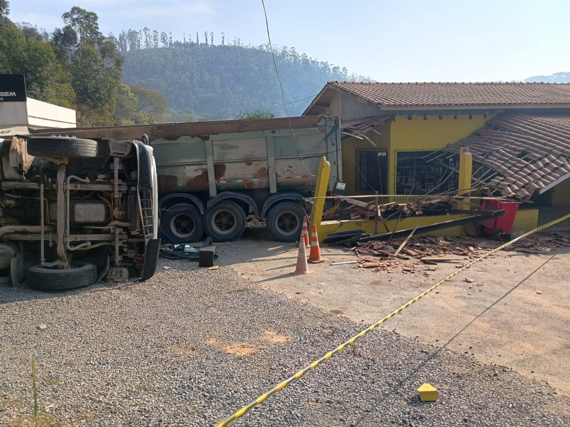 Segundo as primeiras informações, o veículo pesado estava subindo a ladeira em frente ao estabelecimento quando acabou voltando de ré, caiu no barranco da lateral e tombou por cima de parte do telhado do comércio. No momento do acidente, não tinha ninguém no estabelecimento.