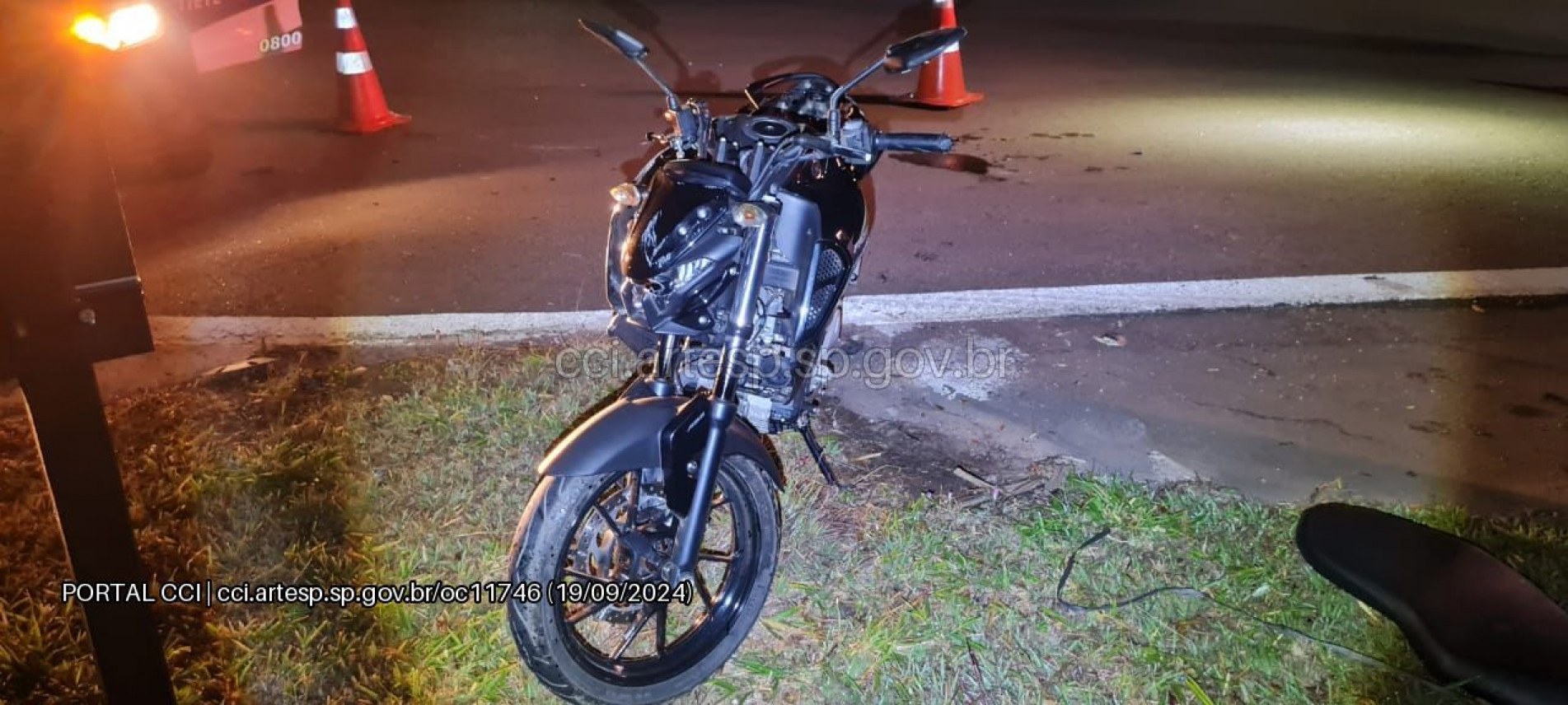 A motocicleta foi retirada da pista por um guincho e o motociclista teve ferimentos leves