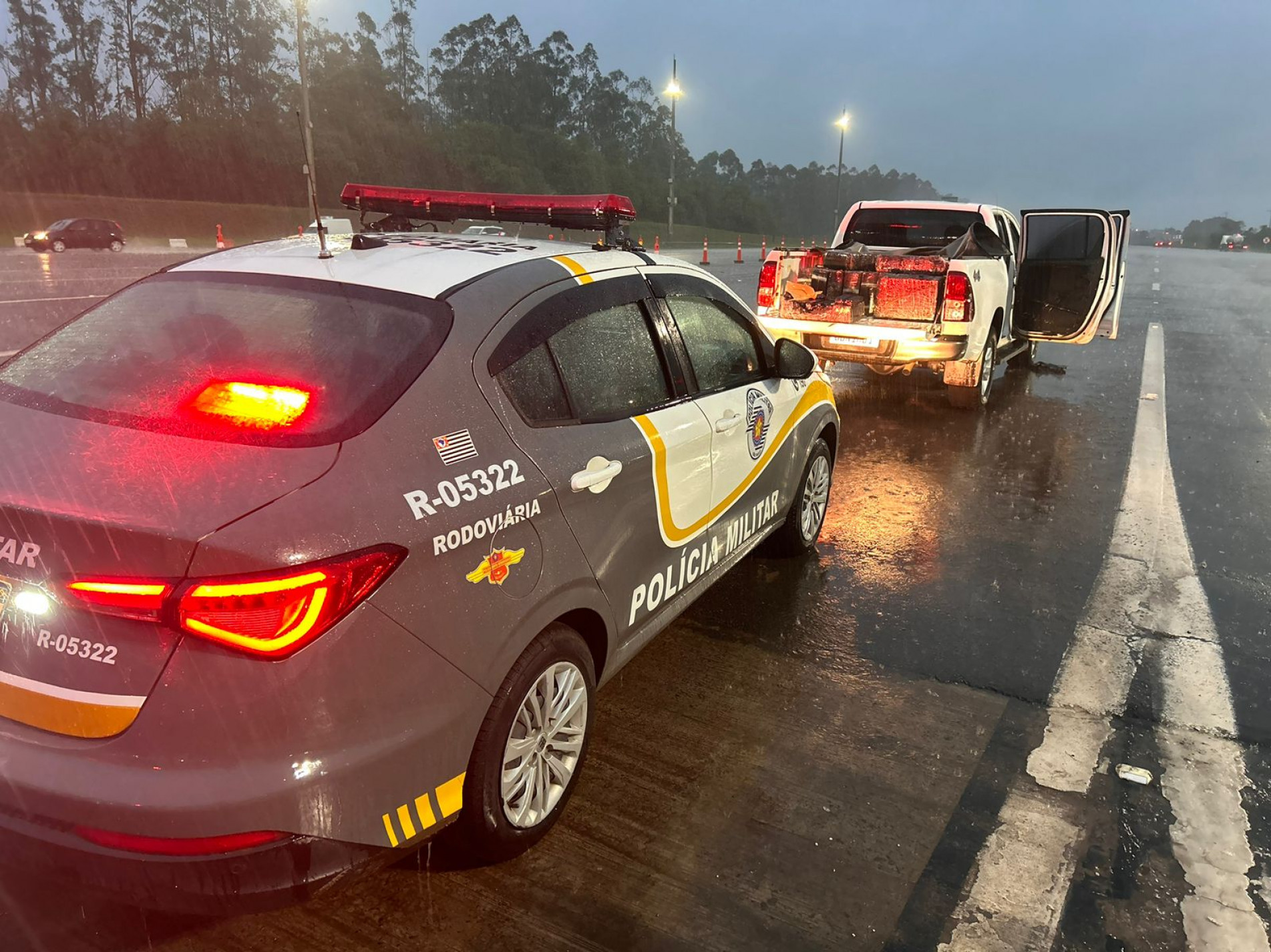 A apreensão deu-se durante fiscalização de rotina da equipe do 5° Batalhão de Polícia Rodoviária. Os policiais abordaram o motorista no pedágio. Segundo a Secretaria de Segurança Pública, o fato do condutor de 26 anos não usar o cinto de segurança chamou a atenção.