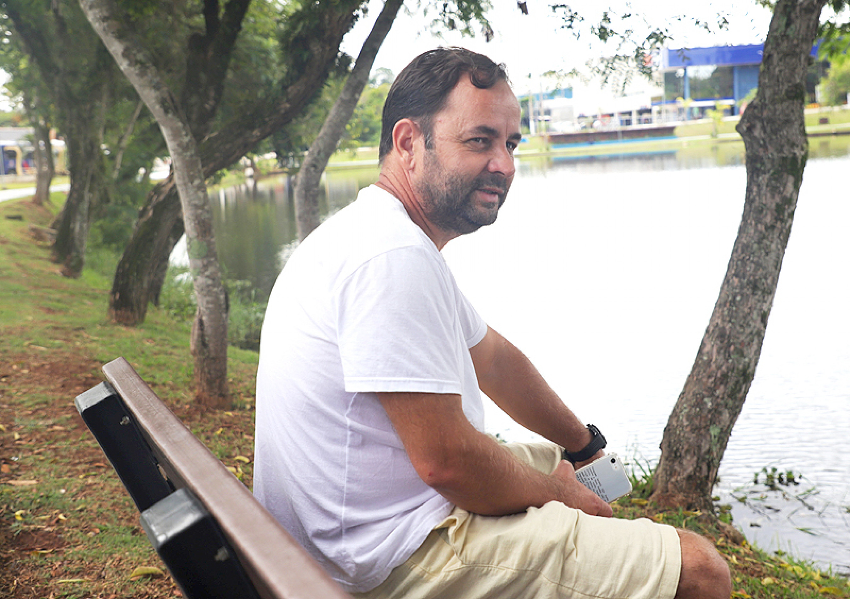 “Sou de Maringá, no Paraná, e vim para cá com 20 anos. São quase 30 anos já. Morar aqui é muito bom, uma paz. Eu moro no bairro Jundiaquara e tô aqui (no Lago Municipal) agora porque a minha filha está fazendo aula de carro, mas a gente sempre vem aqui no centro. É uma cidade muito bonita e agora ficou melhor ainda com esse prefeito. A cidade está mais bonita ”