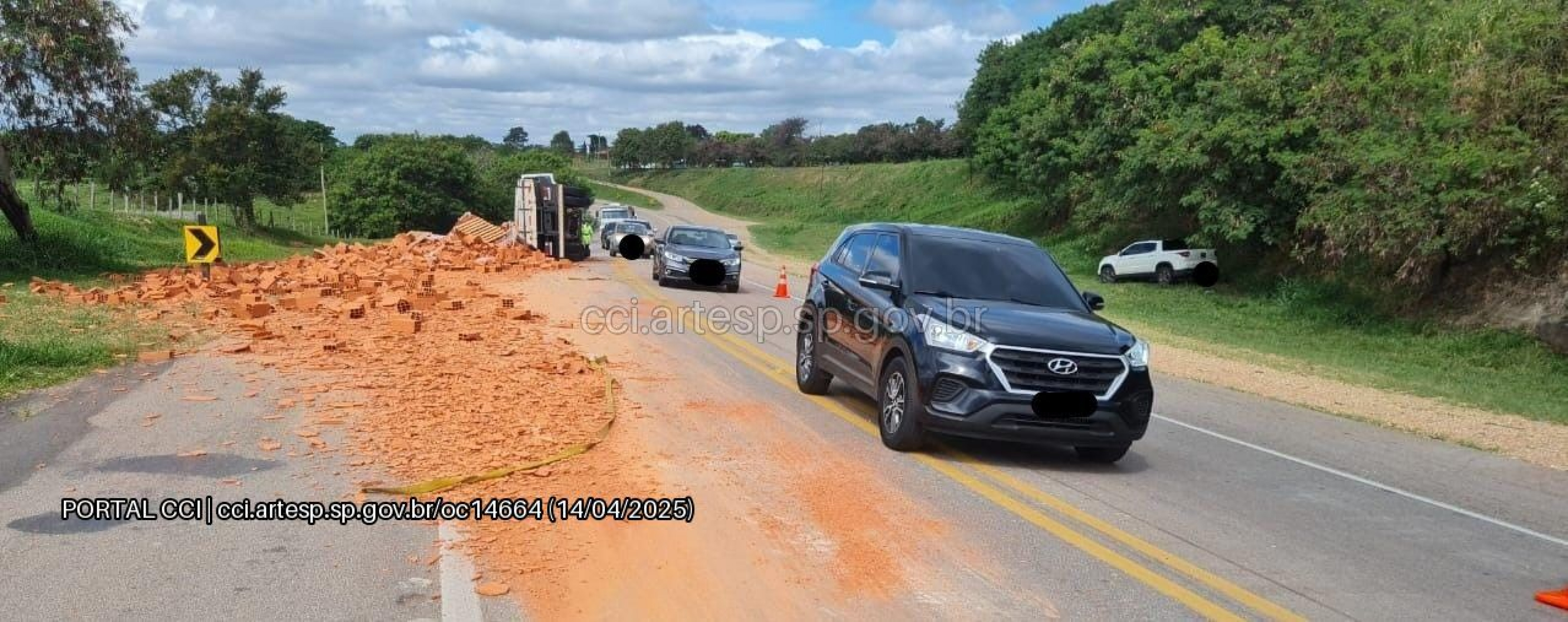 De acordo com a Agência de Transporte do Estado de São Paulo (Artesp), o condutor trafegava no sentido leste da via quando perdeu o controle da direção, tombando no sentido oeste. Com isso, a carga de tijolos caiu e se espalhou pela pista.