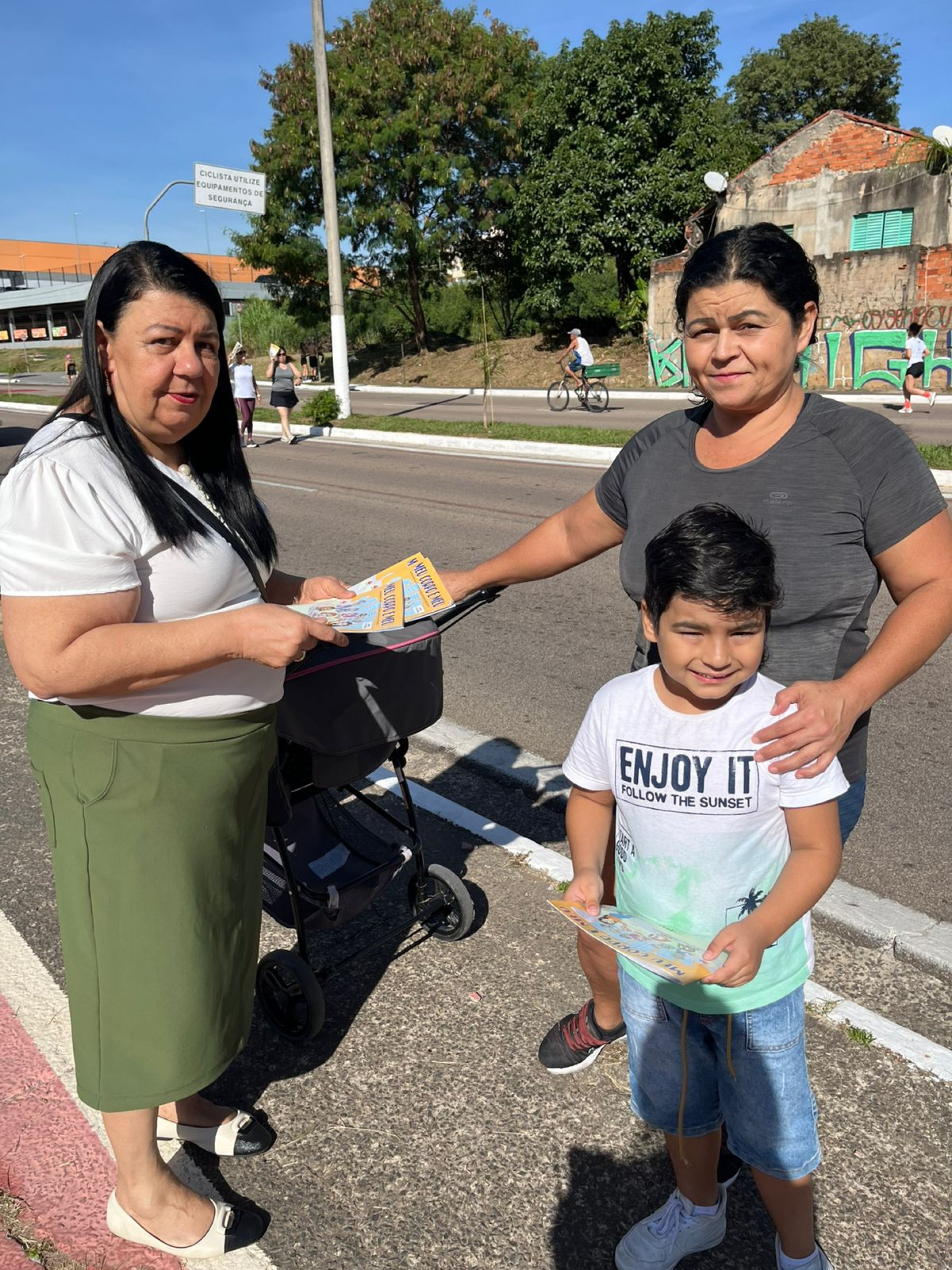 Vanusa Verneck e Leonardo Verneck, de 8 anos, receberam o material distribuído durante a campanha“Faça Bonito Proteja nossas crianças e adolescentes” promovida nesta manhã. "Acho importante esse tipo de ação, campanha. Acho ótimo, temos que cuidar de nossas crianças", falou Vanusa.