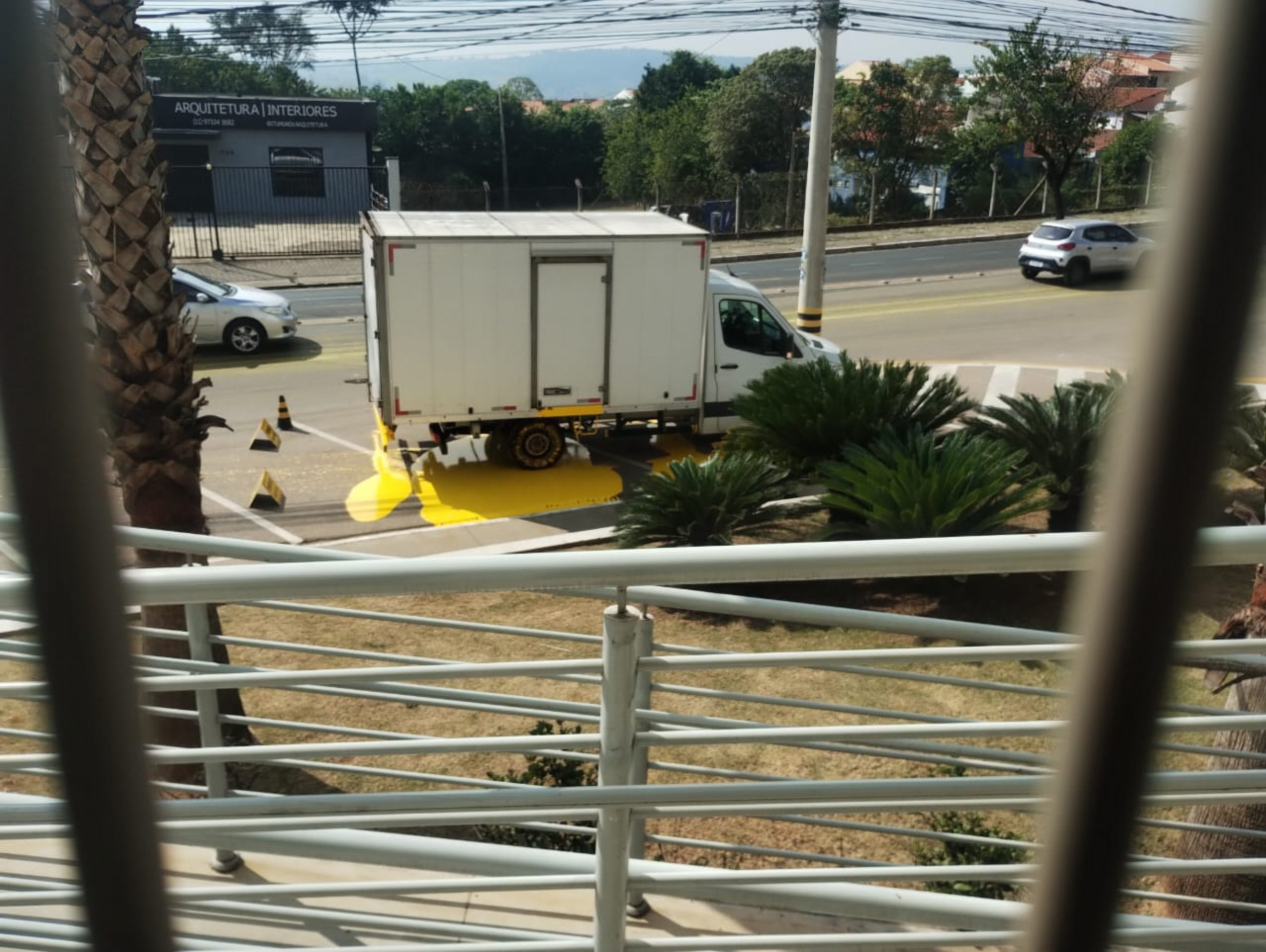 Um tambor de tinta se rompeu dentro de um caminhão na manhã desta quarta-feira (22), enquanto o veículo trafegava pelo cruzamento entre as avenidas Eugen Wissmann e Doutor Herculano de Godoy Passos, em Itu. O material se espalhou pela pista, afetando o trânsito e exigindo a intervenção de equipes de segurança e fiscalização.