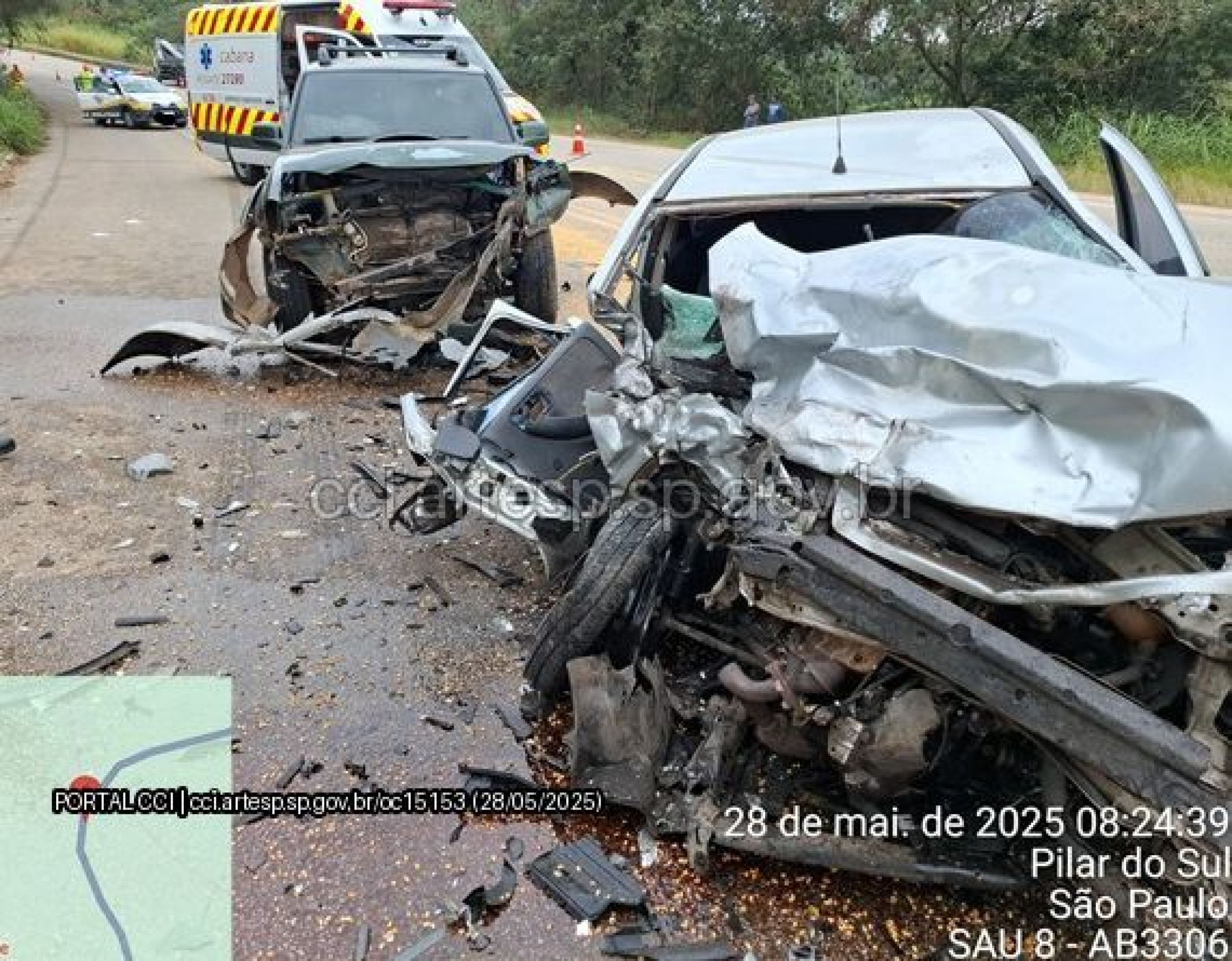 A colisão entre dois veículos resultou na morte de uma pessoa na manhã desta quarta-feira (28), na rodovia João Leme dos Santos (SP-264), no quilômetro 134, em Pilar do Sul.