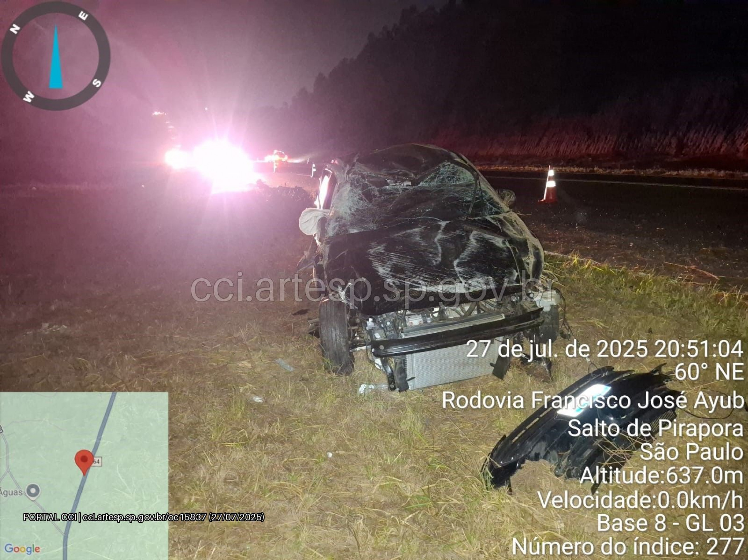 Três acidentes foram registrados em Salto de Pirapora na noite deste domingo (27), no intervalo de uma hora, resultando em uma morte, uma vítima com ferimentos moderados e outra com lesões leves. As ocorrências aconteceram em diferentes trechos da rodovia João Leme dos Santos (SP-264) e na Estrada Vicinal Roque de Barros Leite, mobilizando equipes de resgate e operação.