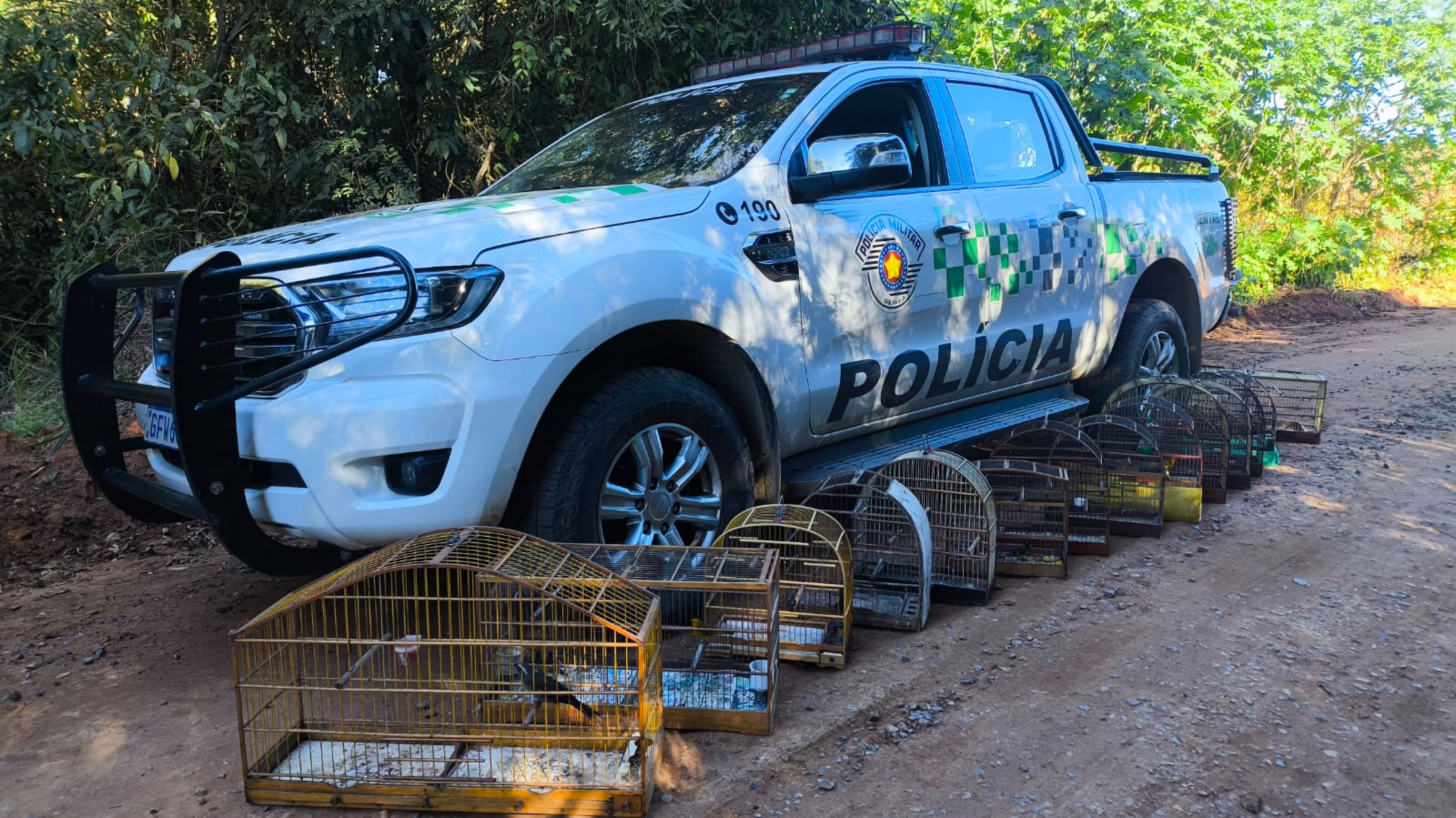 Vinte e oito aves foram resgatadas durante operação da Polícia Ambiental de São Miguel Arcanjo, nesta quarta-feira (31). Os animais estavam em gaiolas em uma residência na rua Antônio José da Silva, no Jardim Bela Vista.