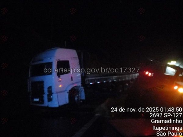 Na sequência, o caminhão foi deslocado para o acostamento. Por volta das 5h, a carreta foi removida para o posto de serviço e depois a carga foi recolhida da via. Todas as faixas e o acostamento ficaram interditados após o acidente, causando congestionamento no trecho.
