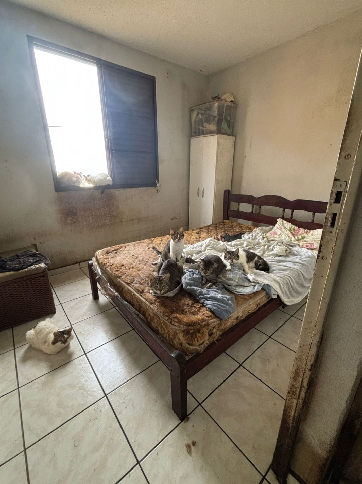 Durante o cumprimento da ordem judicial, equipes do Setor de Investigações Gerais (SIG), com apoio de órgãos municipais, constataram um cenário altamente insalubre, com acúmulo de urina e fezes, ausência de alimentação e de areia sanitária, além de animais apresentando sinais de doença e ferimentos. Um dos felinos foi diagnosticado com uma doença grave e contagiosa, o que exigiu isolamento imediato por representar risco à saúde pública.