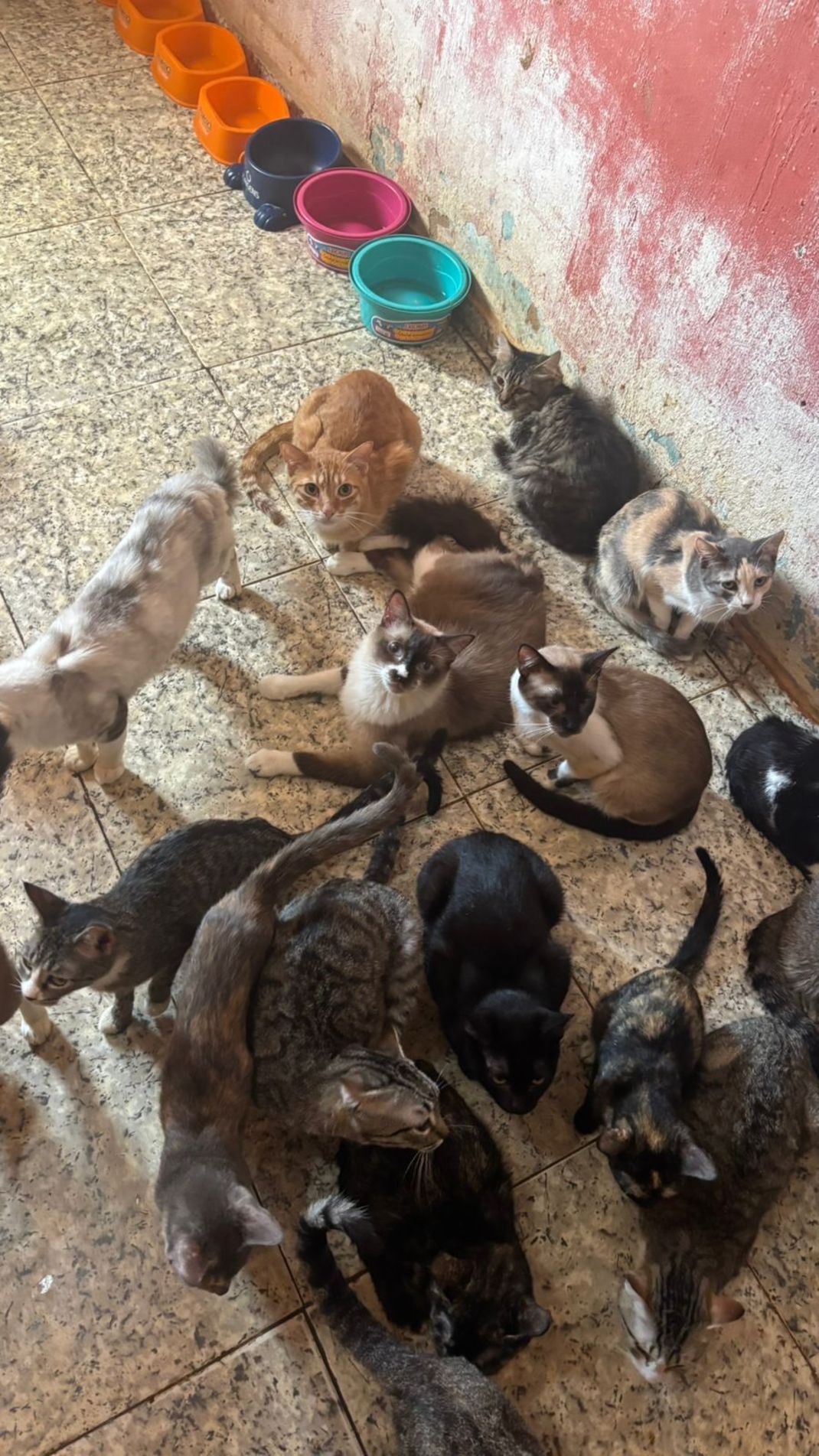 Em um dos cômodos da residência, foram localizados 37 gatos confinados, sem condições adequadas de higiene, ventilação ou alimentação. Também foi encontrado um gato com lesão ocular grave, sem tratamento.