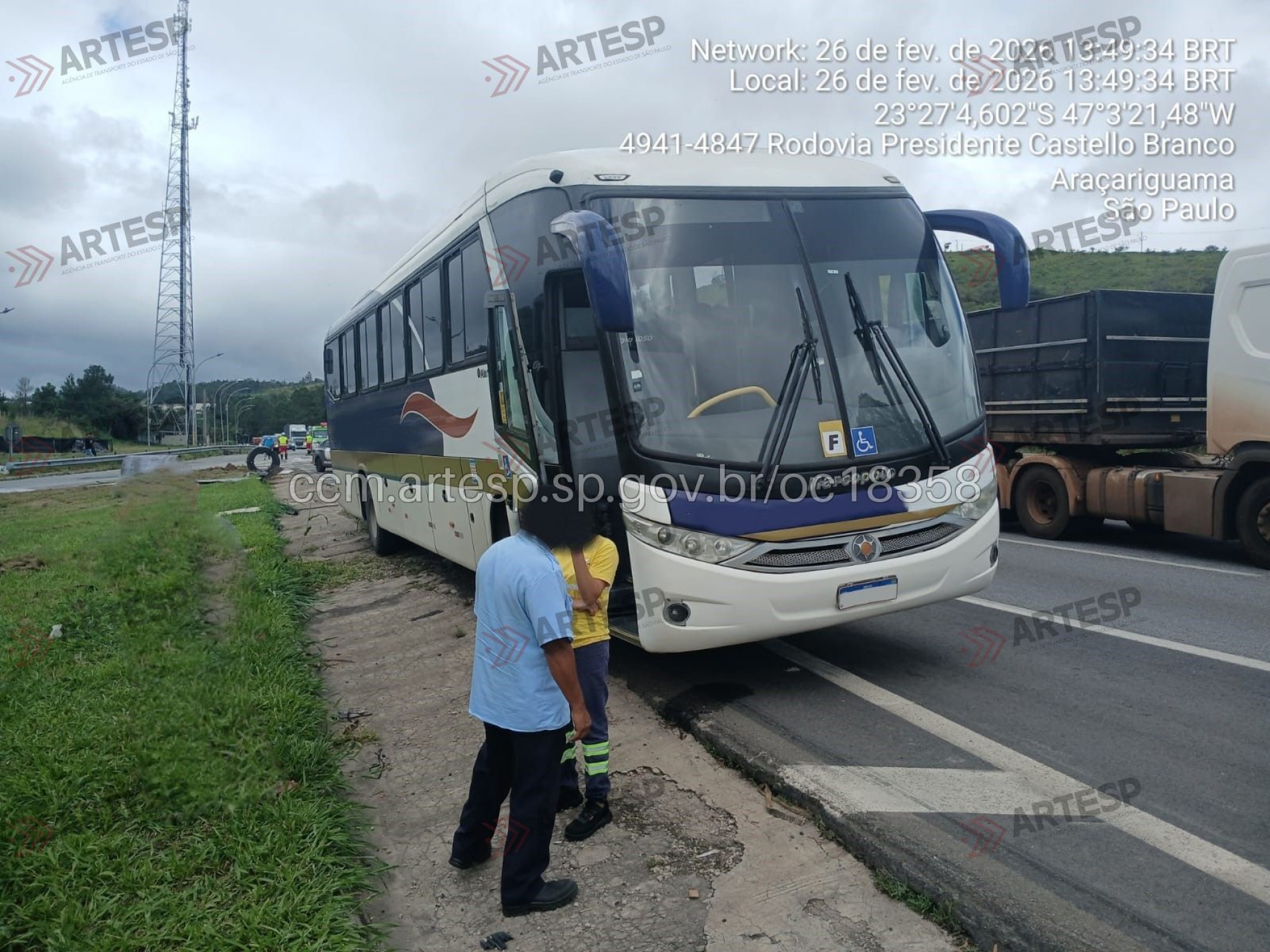 O ônibus foi removido por guincho até um posto, e os passageiros seguiram viagem em outro veículo da empresa. A carreta também foi levada por guincho até a base da Polícia Militar Rodoviária (PMRv). O caminhão conseguiu se deslocar até a base da corporação.