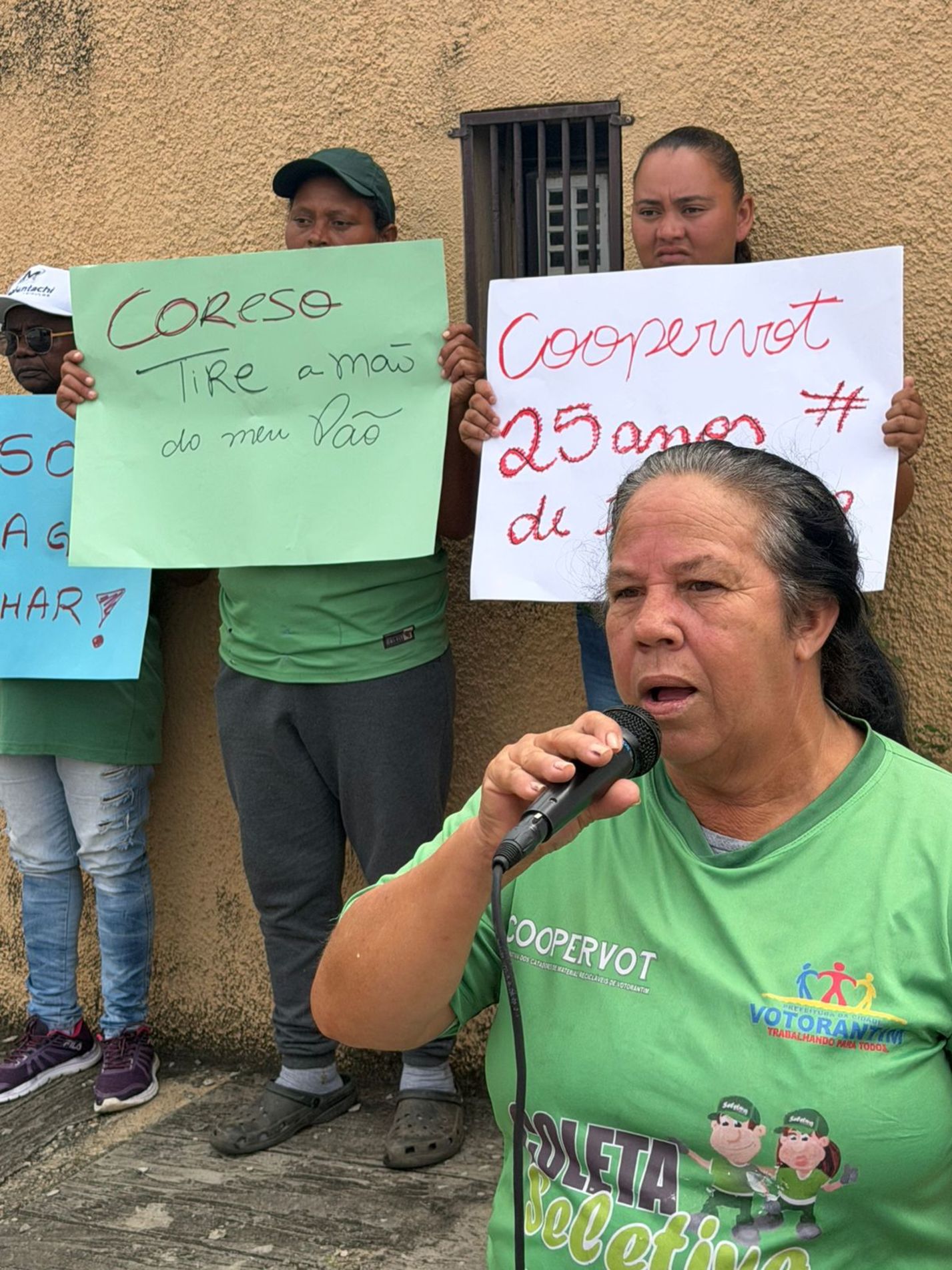 Um protesto foi organizado em frente à Cooperativa de Trabalho de Catadores e Catadoras de Materiais Recicláveis de Sorocaba (Coreso), na manhã desta sexta-feira (27). Os manifestantes, em sua maioria cooperados da Cooperativa dos Catadores de Materiais Recicláveis de Votorantim (Coopervot), pediam que a Coreso desistisse de assumir a coleta seletiva do município de Votorantim.