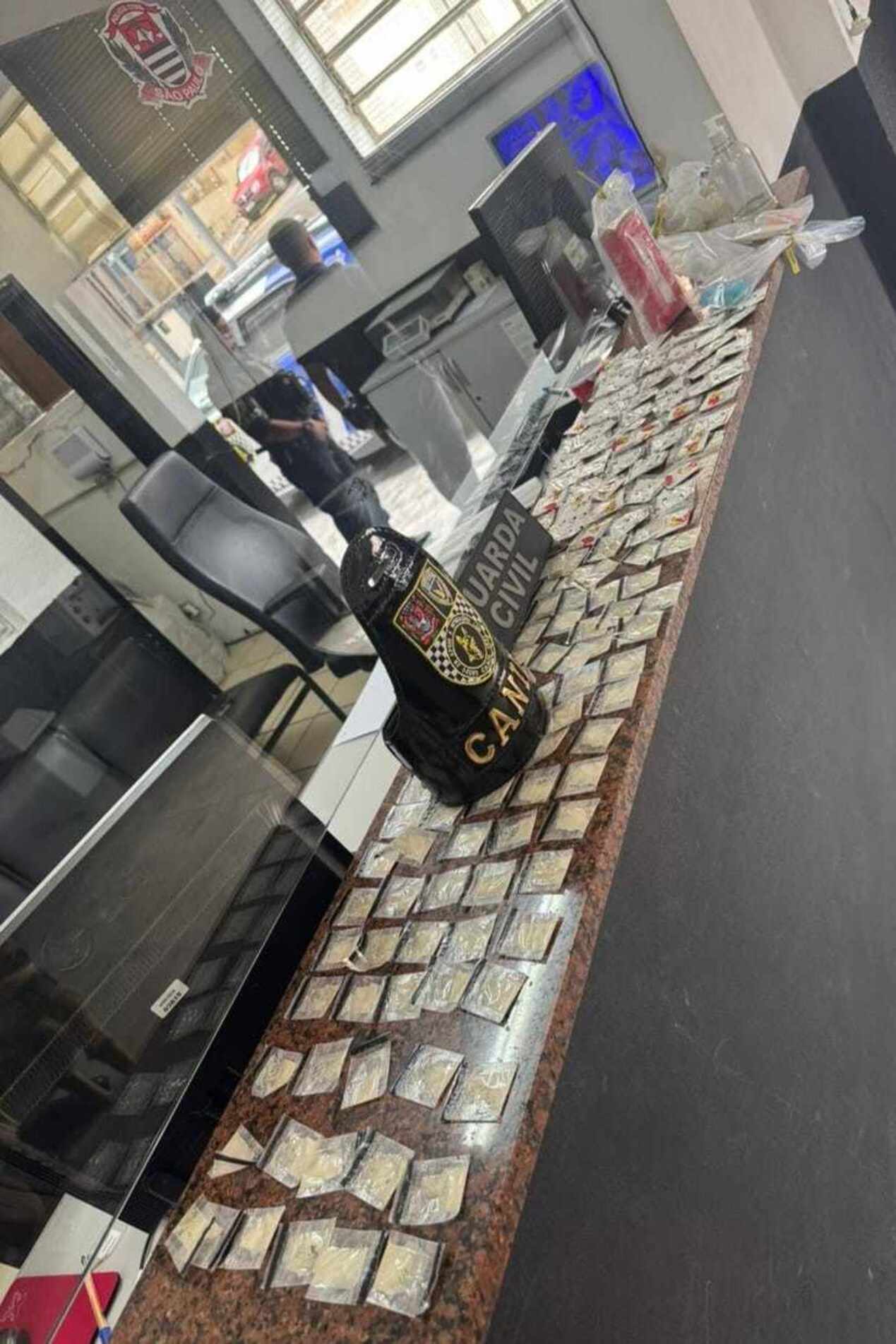 Com apoio do Canil da GCM e do cão farejador Zion, foram realizadas buscas na residência, onde foi localizada uma bolsa contendo drogas já fracionadas e dinheiro em espécie. Ao todo, foram apreendidas 144 porções de cocaína, 19 porções de crack e 7 porções de skunk (forma “turbinada” de maconha), um tijolo de maconha pesando 335 gramas e R$ 230 em dinheiro.
