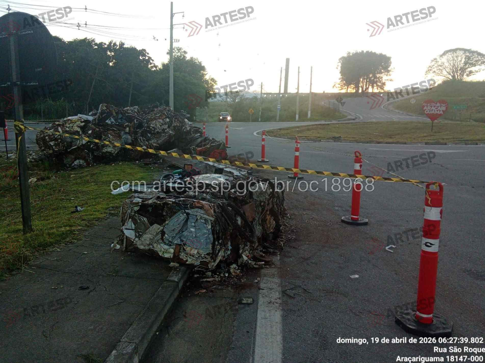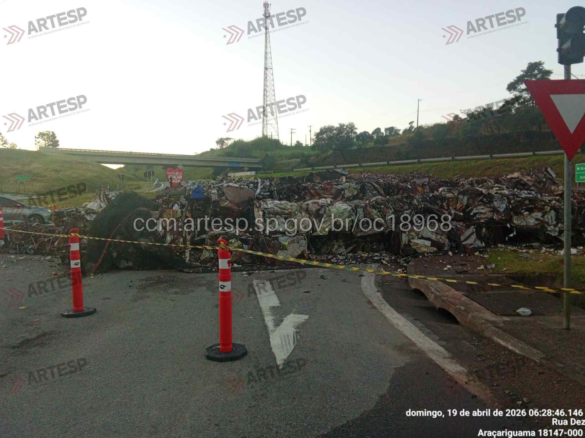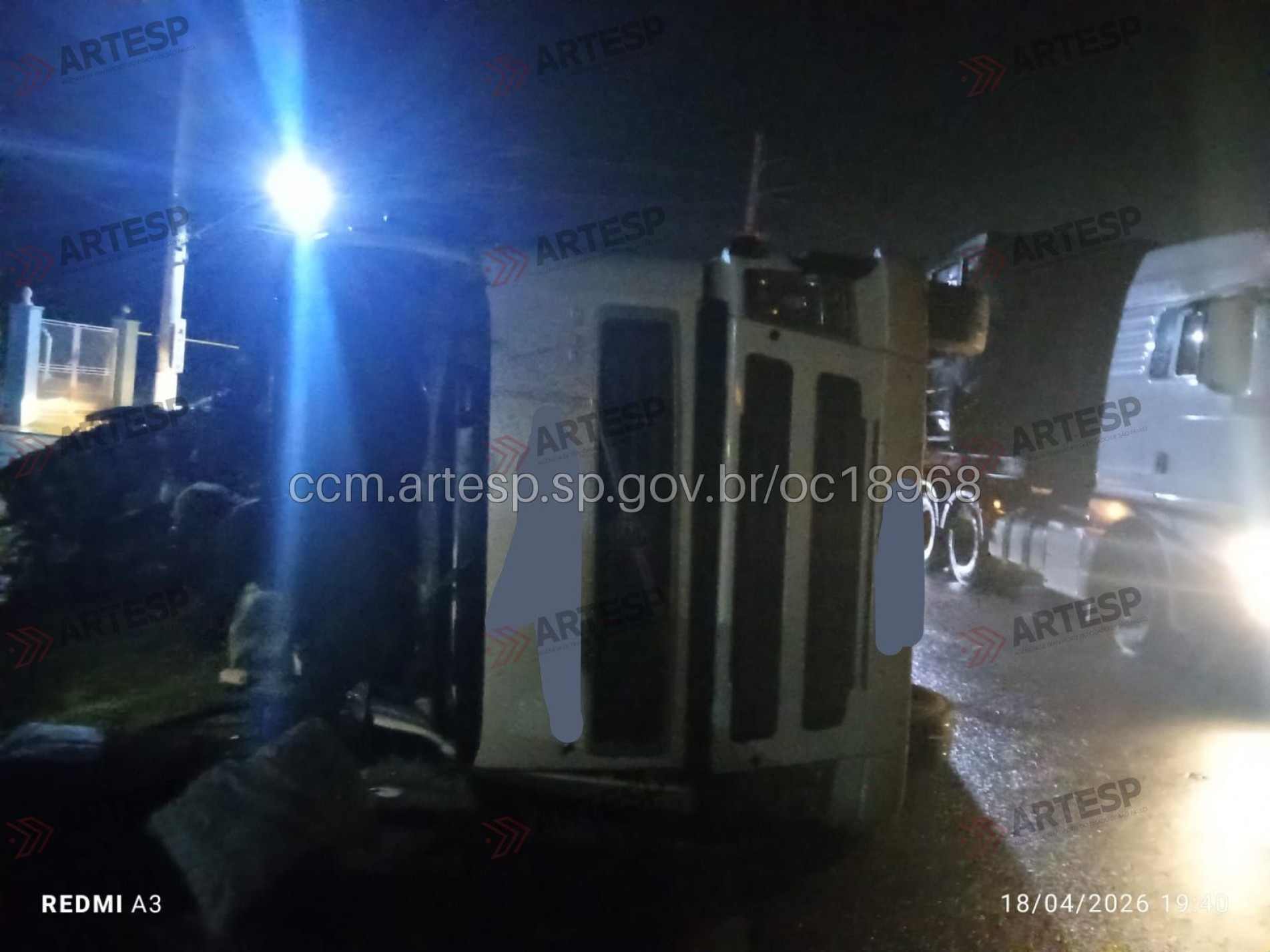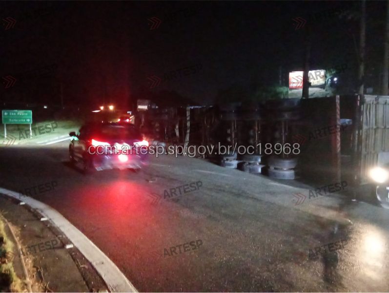 Um bitrem carregado com sucata tombou na noite deste sábado (18) na Rodovia SP-280 Rodovia Raposo Tavares, na altura do km 51, em Araçariguama. O acidente ocorreu por volta das 19h38, no sentido oeste, em um trecho de pista dupla com acesso por alça de retorno.
