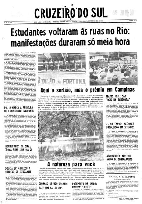 O jornal Cruzeiro do Sul, em sua edição de 18 de outubro de 1968, noticiava as manifestações de estudantes no Rio de Janeiro contra a repressão ao Congresso da UNE. A concentração reuniu mais de mil pessoas, que ocuparam por 30 minutos a esquina da rua 7 de Setembro com a rua das Quitandas. O grupo seguiu em passeata até a avenida Rio Branco.