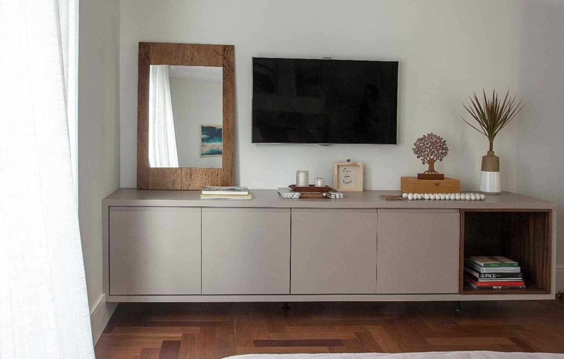 Painéis: Na sala de estar, home theater e dormitórios, um dos meios mais empregados se dá com a instalação de um painel. Com estrutura que pode ser de gesso, mas predominantemente executada em madeira ou MDF, essa face abre espaço para que os fios sejam organizados na parte de trás, resultando em um ambiente elegante e sofisticado. Outra vantagem do recurso é que não há restrições para a quantidade de aparelhos, uma vez que os furos abertos concedem espaços para a passagem dos fios a serem conectados nas tomadas. “Para que tudo fique perfeito, sempre recomendo investir em um móvel planejado para que ele resolva questões funcionais e estéticas do projeto”, aconselha a profissional.