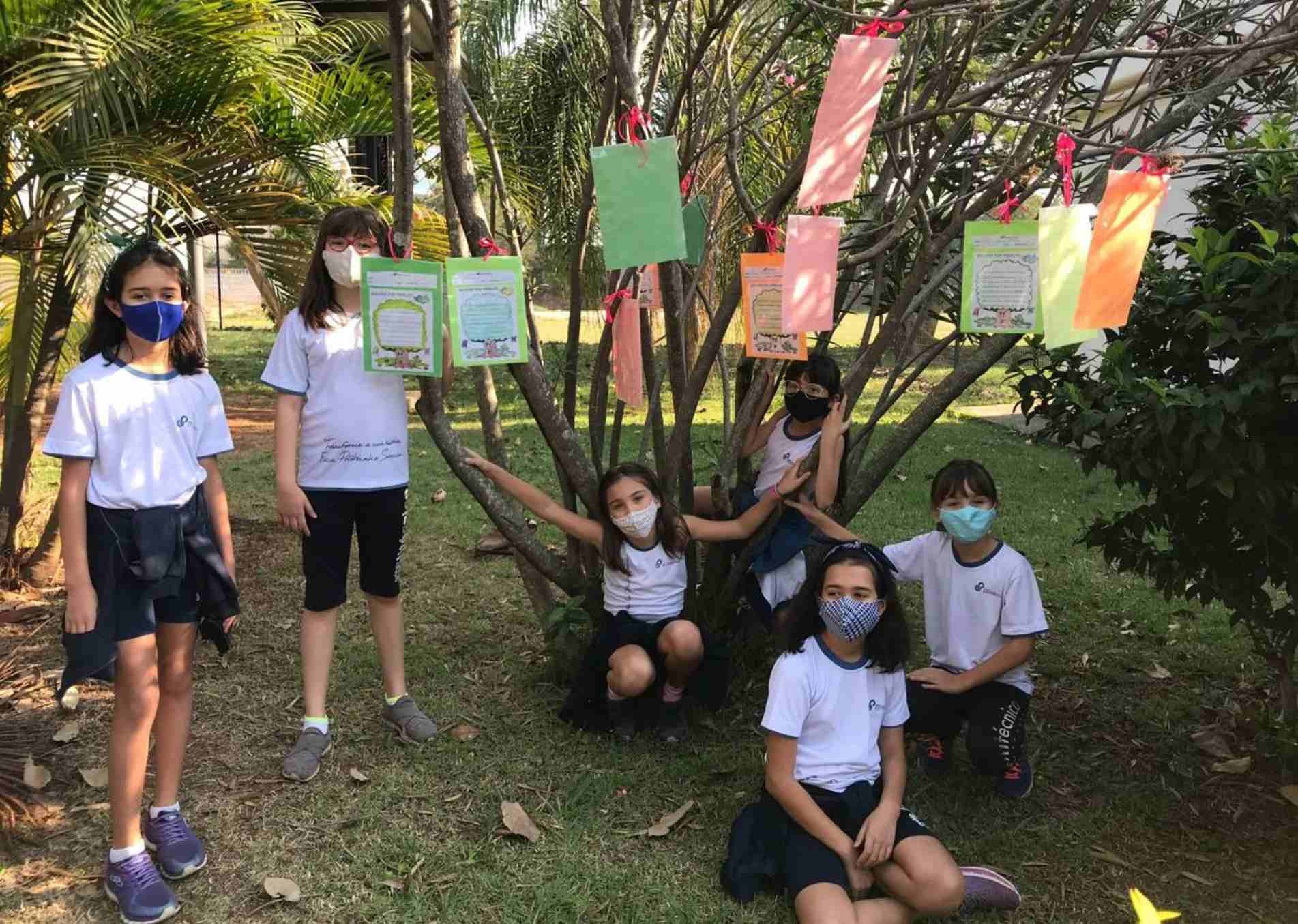 Os alunos do Colégio Politécnico -- Unidade Alto da Boa Vista criaram uma árvore dos desejos em comemoração ao Dia da Árvore. As turmas do 3º ano do Ensino Fundamental 1 escreveram cartinhas com os seus desejos pessoais, para o colégio e para o mundo. A parte mais legal é que todas as cartinhas foram penduradas em uma árvore que fica na escola, para que todas as salas possam ver.