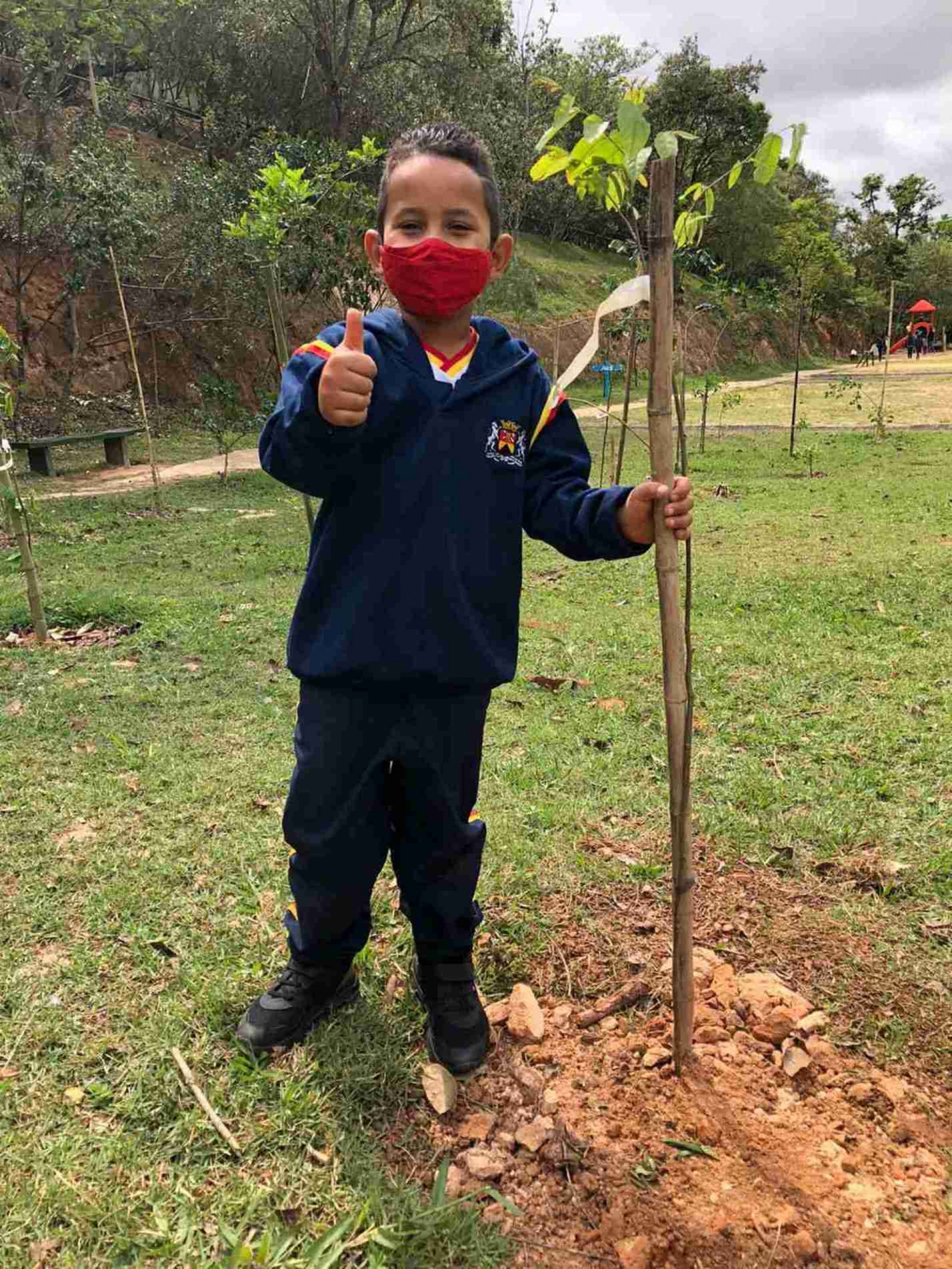 O Lorenzo Gabriel Santos, de 6 anos, aproveitou cada etapa da atividade. E olha que são várias. Isso porque, antes de plantar, é preciso cavar um buraco para depois colocar a muda. Depois, é só preencher o buraco com terra para cobrir as raízes da mudinha. “Nós misturamos a terra e jogamos no buraco. Eu ajudei a plantar cinco árvores”, comemora.