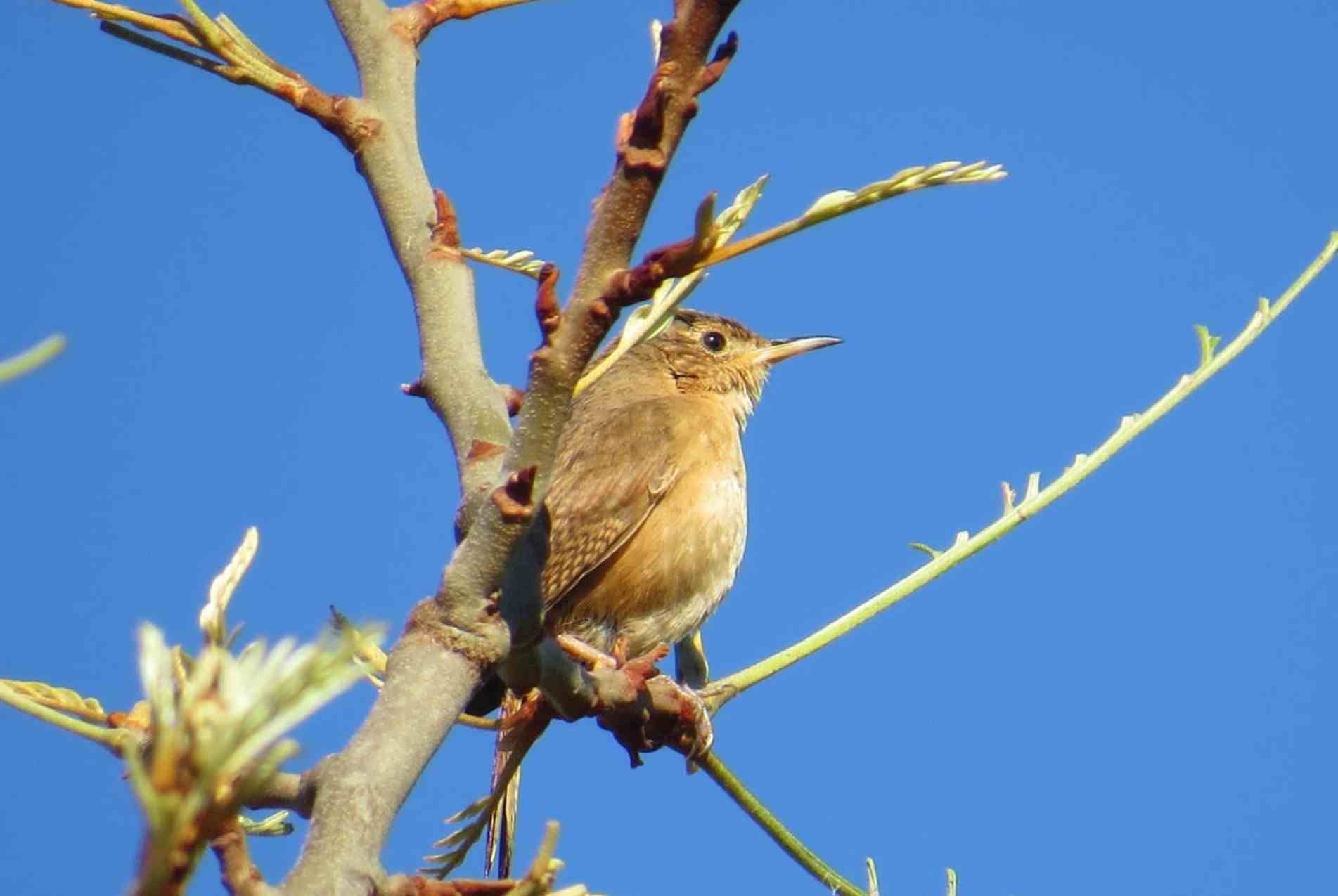 Observe a foto! Ela é uma ave que mede entre 10 e 12 centímetros e vive cantando e saltitando, erguendo sua cauda quase que em um ângulo de 90 graus. Possui as penas pardas, com a garganta e a barriga em cores claras e as asas e a cauda rajadas de cinza escuro.