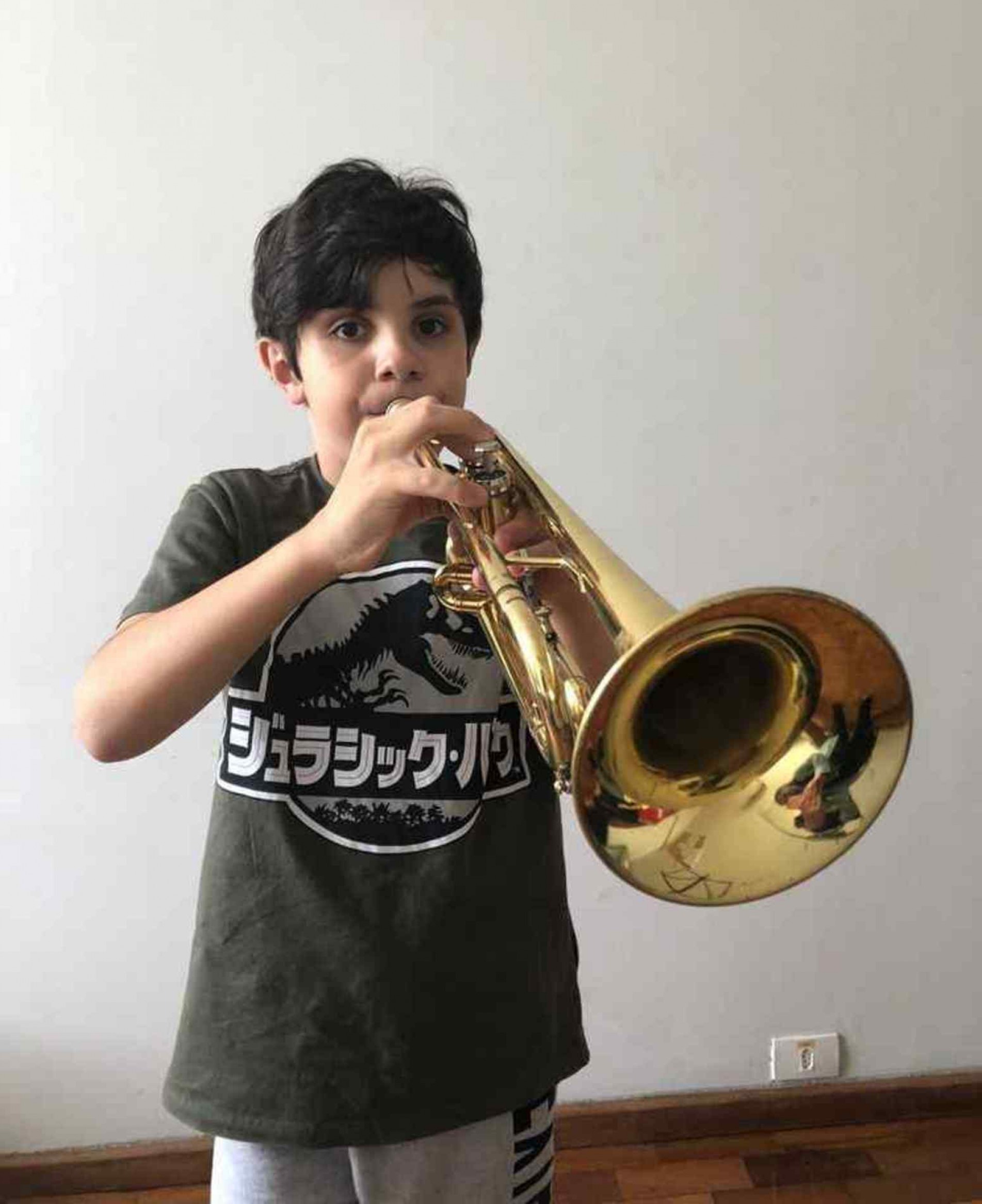 Desde bebês, os irmãos gêmeos Lucas e Gabriel Santos Pedrosa, de 11 anos, estão conectados com a música. Isso porque nasceram em uma família de músicos, já que a mãe, o pai e o avô tocam vários instrumentos. Inclusive, foi o avô quem ensinou as primeiras notas para os dois. Hoje, eles fazem aulas de música na Fundec e no Projeto Guri. Lucas toca trompete e Gabriel trompa, dois instrumentos de sopro. Para atingir as notas, os irmãos contam que é preciso ter muito fôlego. E isso eles foram aprendendo com o tempo, afinal, estão há mais de três anos praticando e participando das aulas.