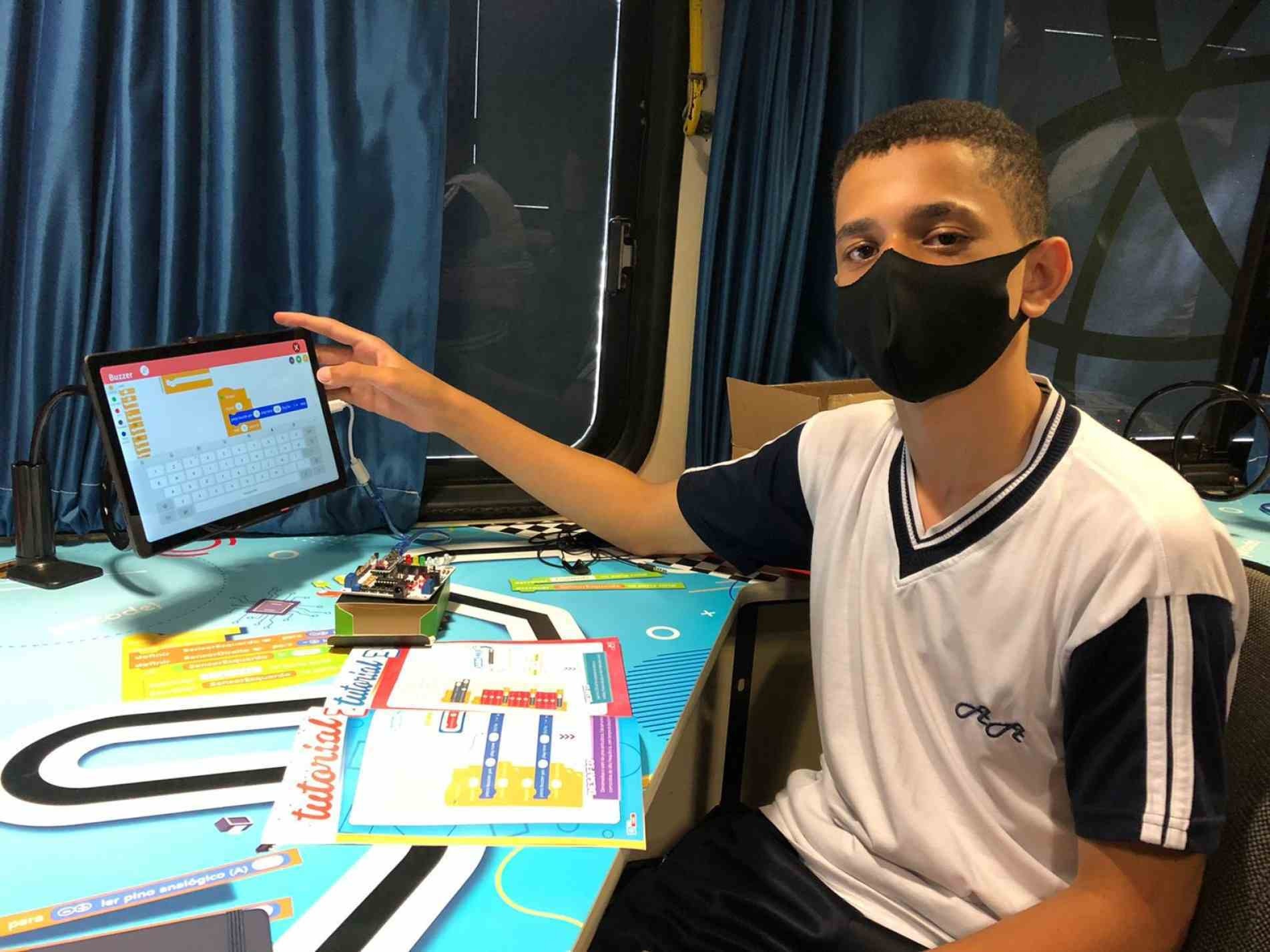 O Felipe Franco, de 15 anos, adorou ter contato com esse universo digital, ainda mais dentro de um ônibus. “Achei muito bacana. Ajuda no futuro caso a gente queira seguir nessa profissão. É um pouco difícil, mas bem interessante”, frisa. A Rafaela Passos, de 15 anos, diz que é bem diferente aprender dentro de um ônibus. “Achei que programação seria mais difícil, gostei bastante. É uma experiência para o currículo”, finaliza, ao dizer que as aulas foram “incríveis”. (Jéssica Nascimento)