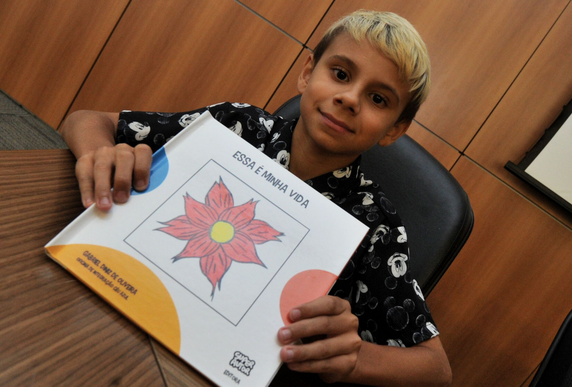 O Gabriel Diniz de Oliveira tem 10 anos e escolheu falar sobre a própria vida -- citando pessoas e práticas importantes para ele: futebol, família, amigos e a relação com o irmão mais novo. “Já gostava de desenhar e escrever, e quando a professora me disse do livro passei a gostar mais ainda. Este é meu primeiro livro, já quero fazer outro no ano que vem e assim como eu, acredito que meus amigos também adoram produzi-lo”, disse o estudante.