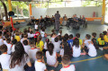 Por sua vez, no CEI-08 Prof.ª Messias Ribeiro de Noronha Cunha, na Vila Progresso, o tema explorado ao longo deste ano foi a música. Nas classes de creche e pré-escola foram feitos cadernos de releitura, trabalhos manuais criativos e, até mesmo, a criação de instrumentos musicais com o uso de material reciclado, como chocalhos, reco-recos e um pequeno violão, produzido com caixa de papelão. Para celebrar o encerramento do ciclo letivo, as crianças do CEI-08 receberam a visita da Banda Regimental de Música da Polícia Militar (PM).