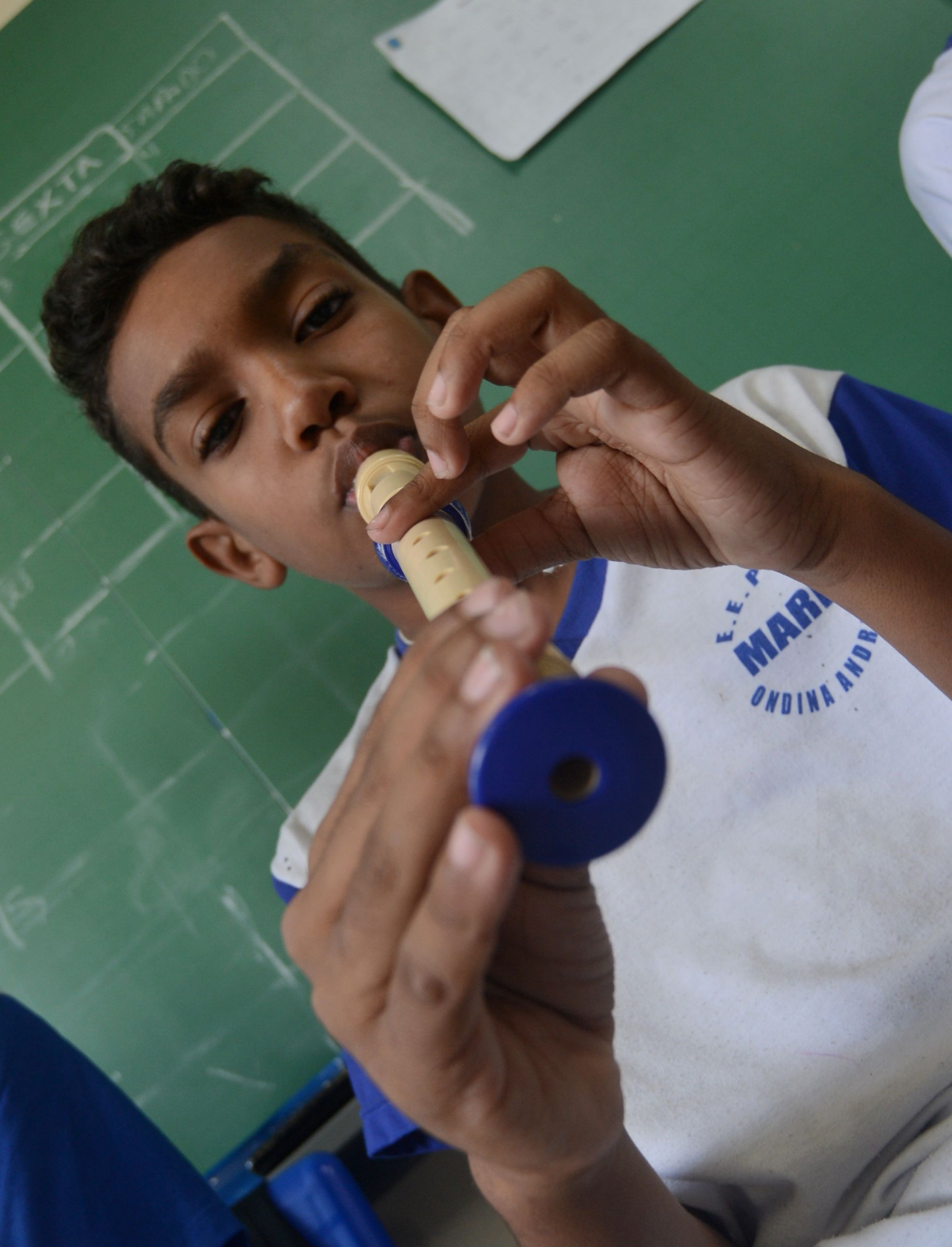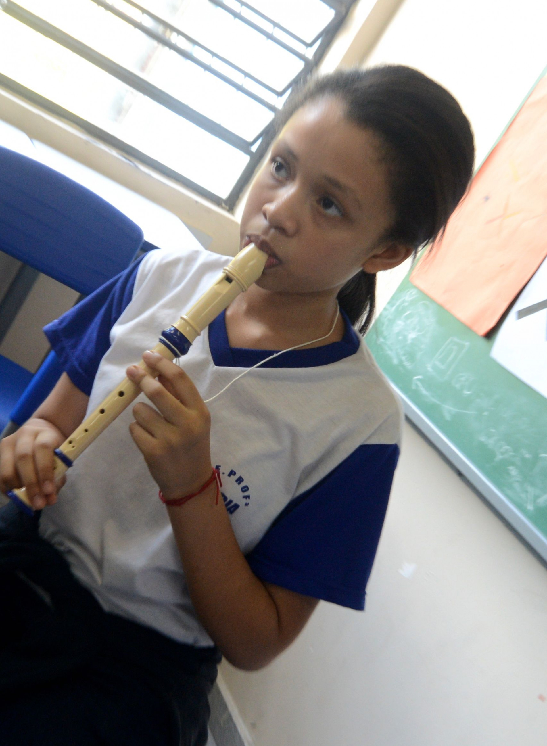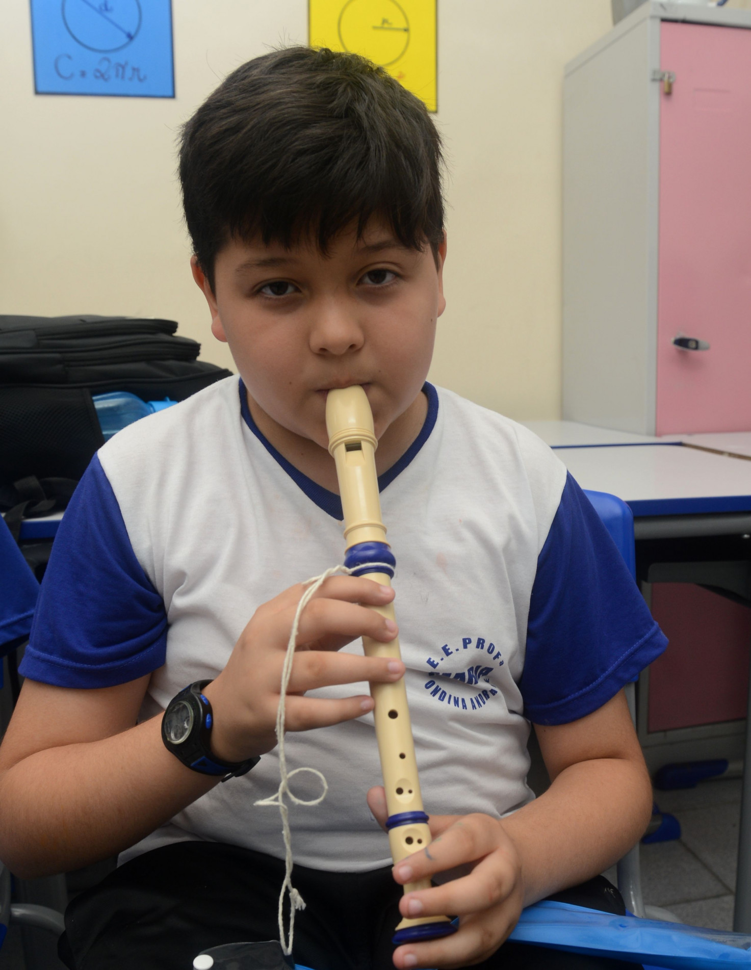 “Eu via ele tocando, me mostrava algumas músicas e quando contei que estou aprendendo na escola ele ficou muito feliz. Como não podemos levar o instrumento para casa, treino com a dele e acabamos aproveitando juntos. Depois da flauta quero ir pro violão também”, disse.