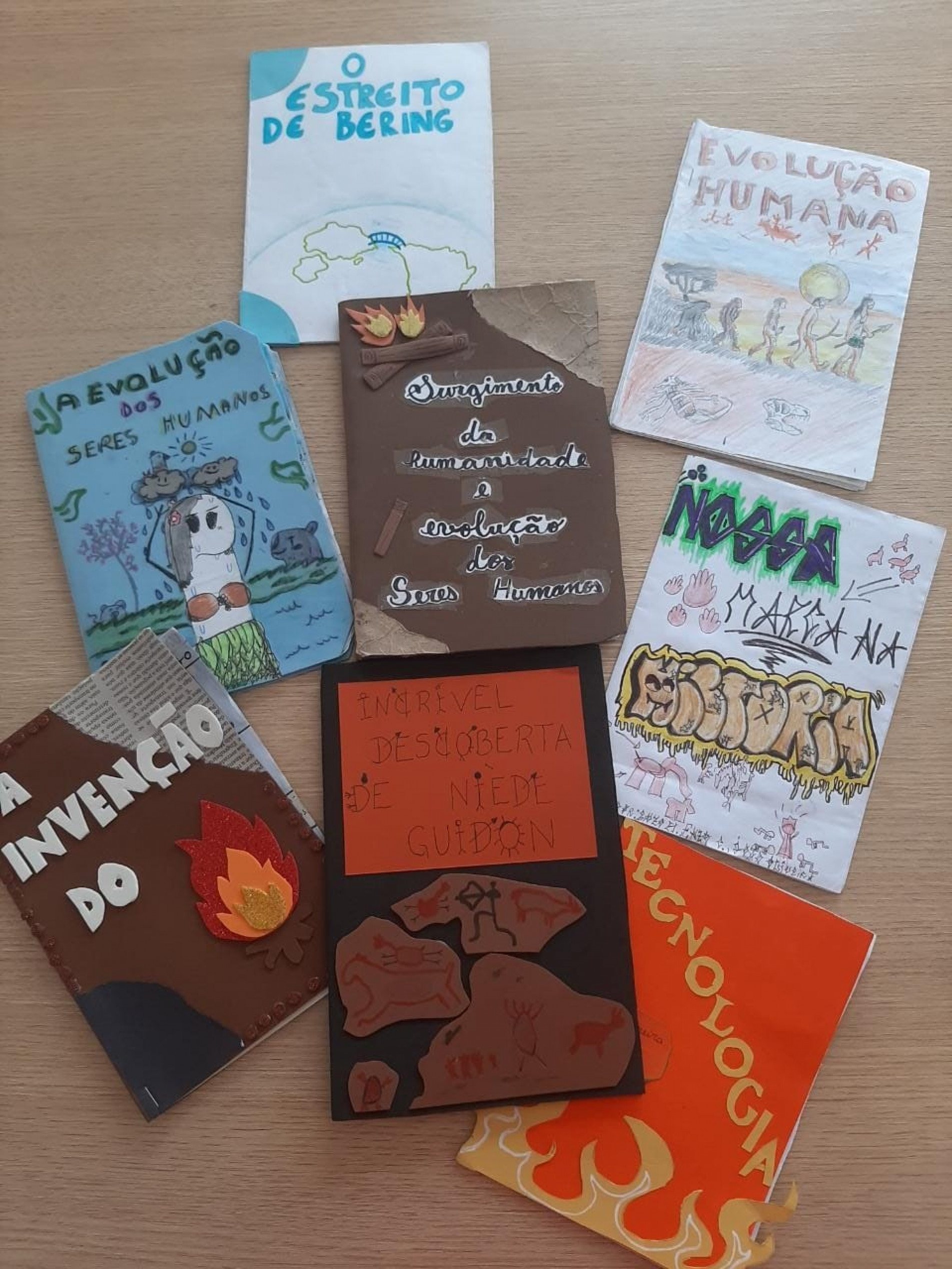 Além dos trabalhos das meninas, outros títulos como “O estreito de Bering”, “A evolução dos seres humanos”, “A invenção do fogo”, “Incrível descoberta de Niede Guidon”, “Surgimento da humanidade e evolução dos Seres Humanos”, “Evolução Humana”, “Nossa marca na história” e “Tecnologia” foram produzidos. (Thaís Marcolino)
