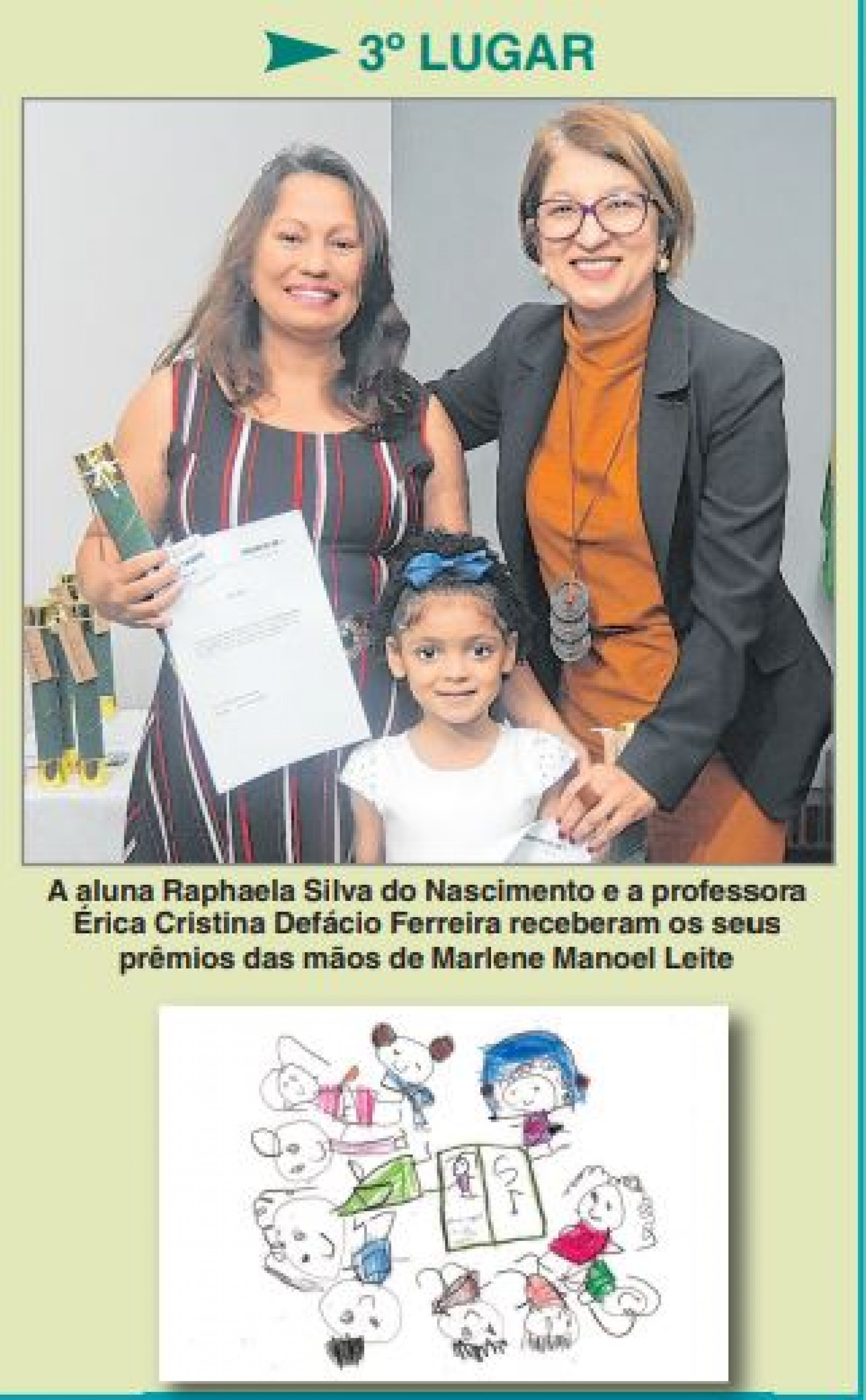 Na primeira categoria, participaram os professores que trabalham no Berçário e nos primeiros anos do ensino infantil (CI, CII e CIII). A vencedora foi a professora Amanda Scarlet dos Santos. O desenho vencedor da segunda categoria, Pré I e Pré II, foi do aluno Arthur de Paula Inocêncio Costa, da EM. Tereza Ciambelli Gianini, orientado pela professora Rama da Rosa Sant’Ana. Na terceira categoria, Fundamental - Anos Iniciais, a aluna Heloísa Rodrigues dos Santos, da EM. Profª Inês Rodrigues Cesarotti levou o primeiro lugar, sob orientação da professora Erika Renata Nunes de Souza Moraes. Na última categoria, Fundamental - Anos Finais, o primeiro lugar ficou com a aluna Ana Laura Castro da Rosa, da EM. Dr. Achilles de Almeida, com orientação da professora Gisele Amazonas de Almeida.