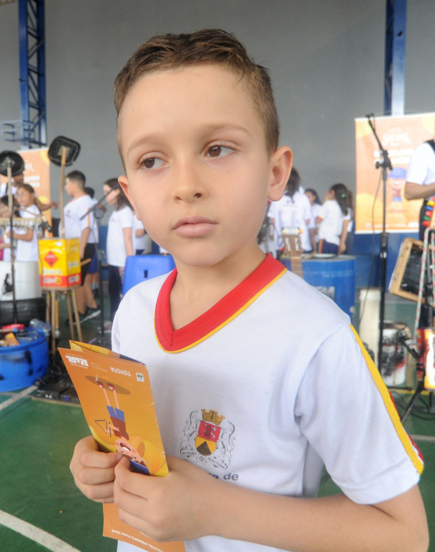 Quem também não deixou de observar a criatividade foi o Enzo Gabriel Duarte Monteiro da Costa, de seis aninhos. “Nunca tinha visto. São instrumentos bem criativos, adorei. O que mais gostei foi a bateria, por que tinha várias coisas e faz um som muito maneiro”, disse o estudante. Assim como a sua colega de sala, Duda, já se aventurou no ramo musical sustentável e fez um chocalho de garrafa pet com arroz para que, na hora de balançar, o grão faça barulho em contato com o plástico. “É simples e muito divertido”, acrescentou o pequeno. Em meio a tantos aprendizados musicais, o que estava por trás era tão ou mais importante: a consciência ambiental. Afinal, não tem como a gente negar que o futuro do nosso planeta está diretamente associado aos hábitos que temos hoje, né?