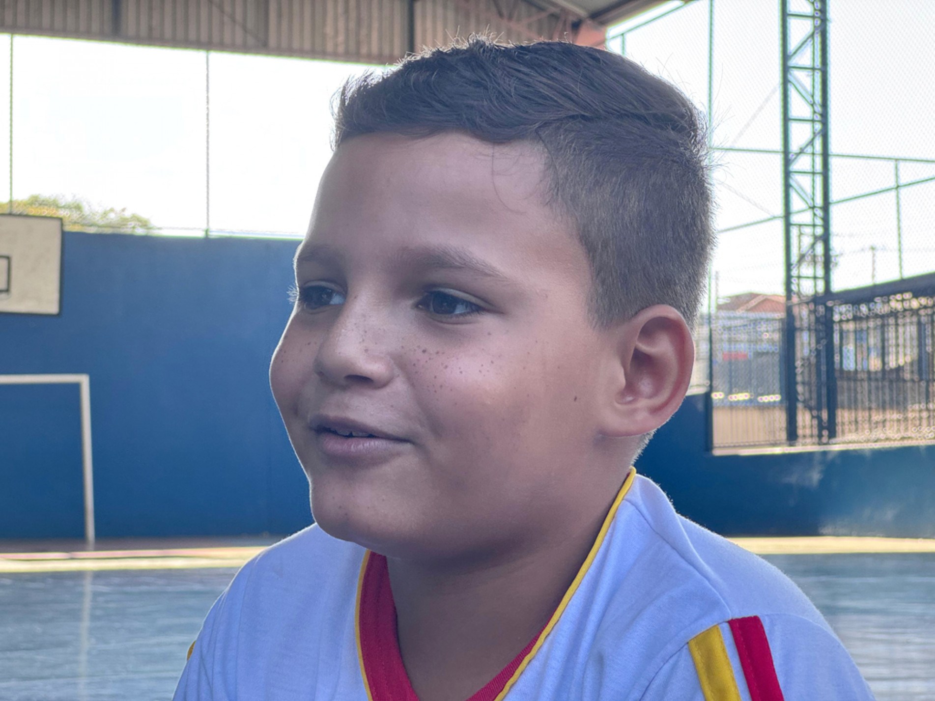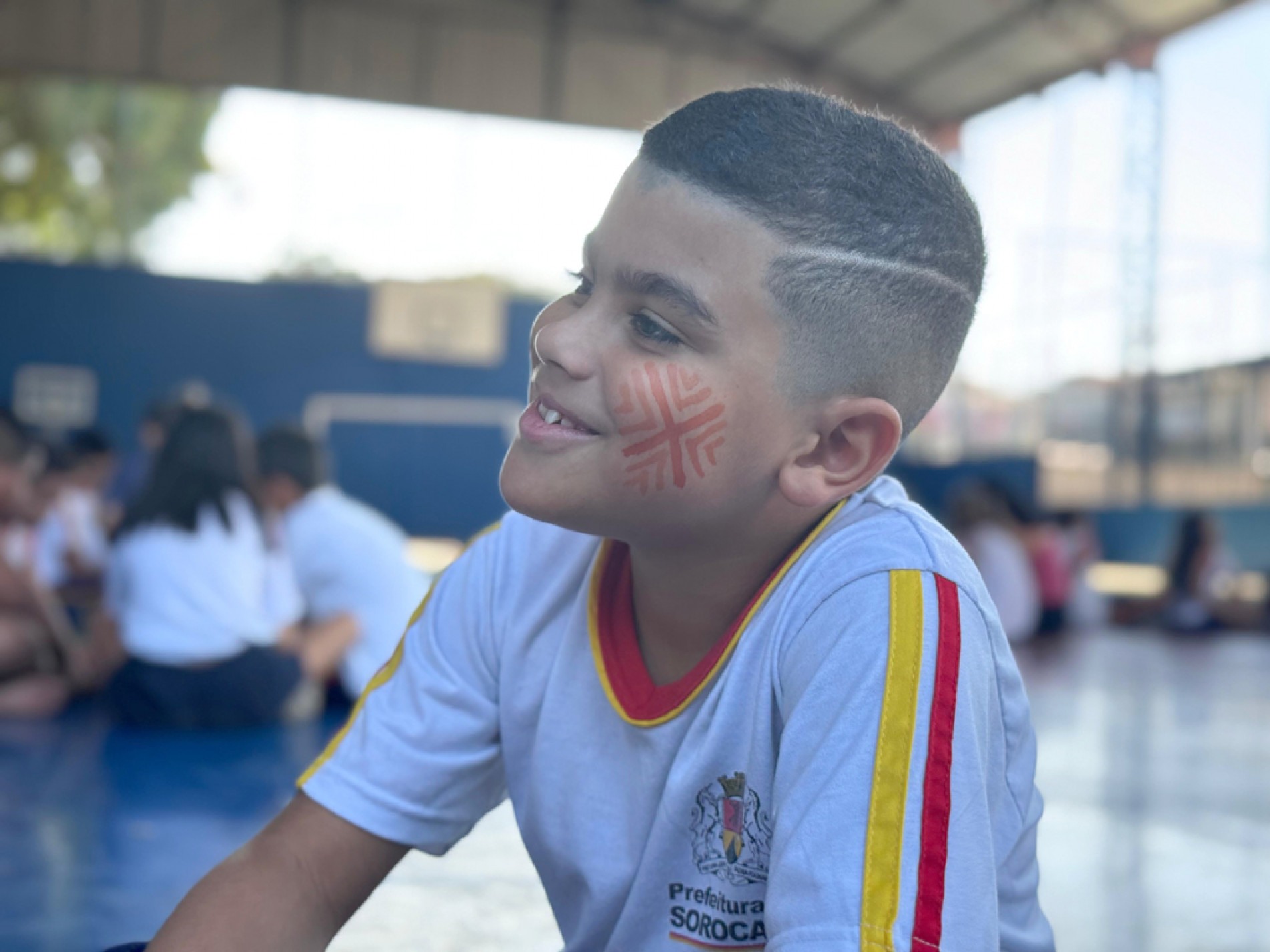 Depois dessa pequena amostra da colheita, chegou a hora de marcar o corpo com um símbolo da resistência indígena. O Brhyan Piettro da Silva entendeu bem o que significou o desenho que optou por deixar no braço e amou saber que a tinta era natural. “É feita com urucum, né? Não conhecia e achei bem legal. Não imaginava que aquela bolinha com agua ficava essa cor”, comentou o aluno do 3º D.