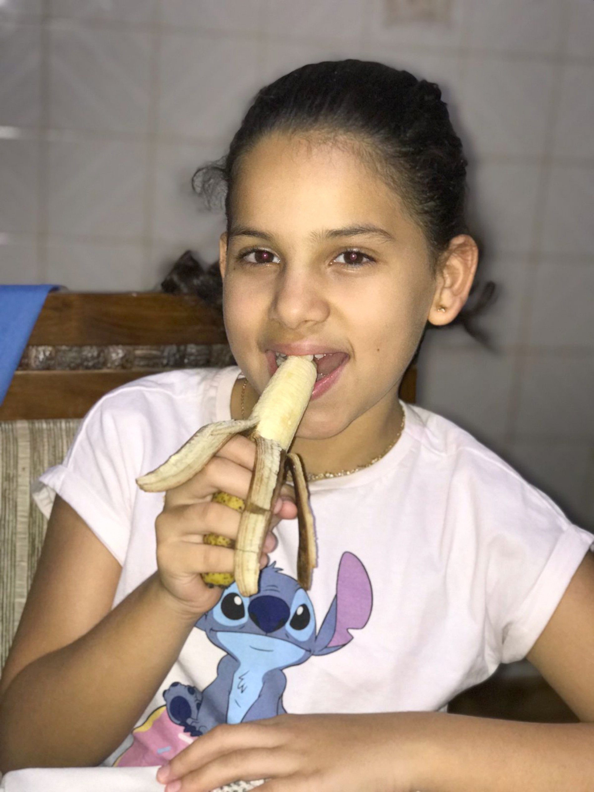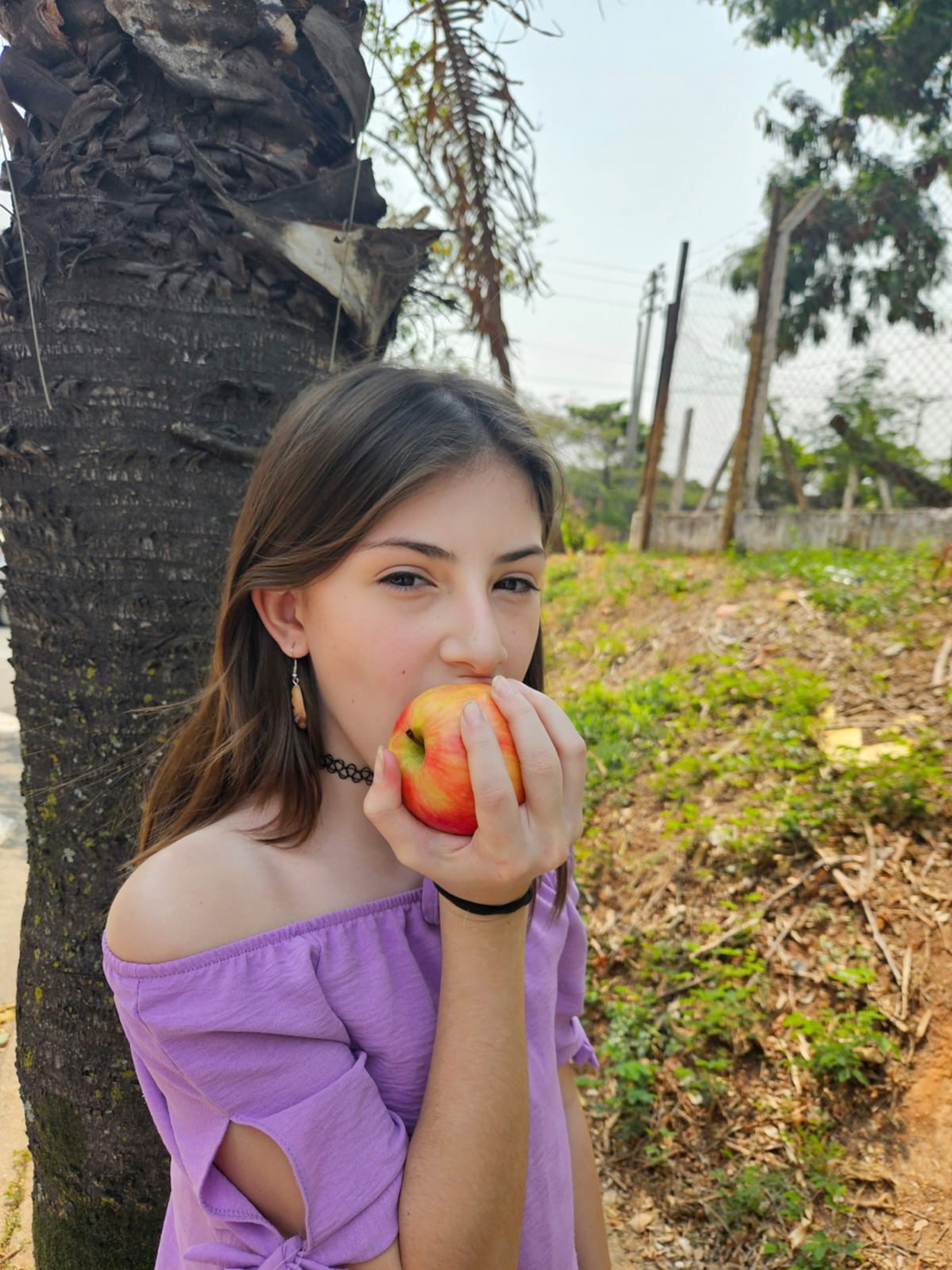 Antonella Machado de Assis, 10 anos, gosta de diversificar o cardápio e aprecia uva, maçã, banana, laranja, mexerica, morango, abacaxi e amora, mas a predileta é a uva verde. Entre as frutas que ainda vai experimentar está a jaca. A jovem conta que nunca provou dessa fruta que é tão comum no Brasil, mas, ainda assim, não tem grande apelo comercial. Entre suas frutas preferidas, Antonella elege a laranja, fruta rica em vitamina C.