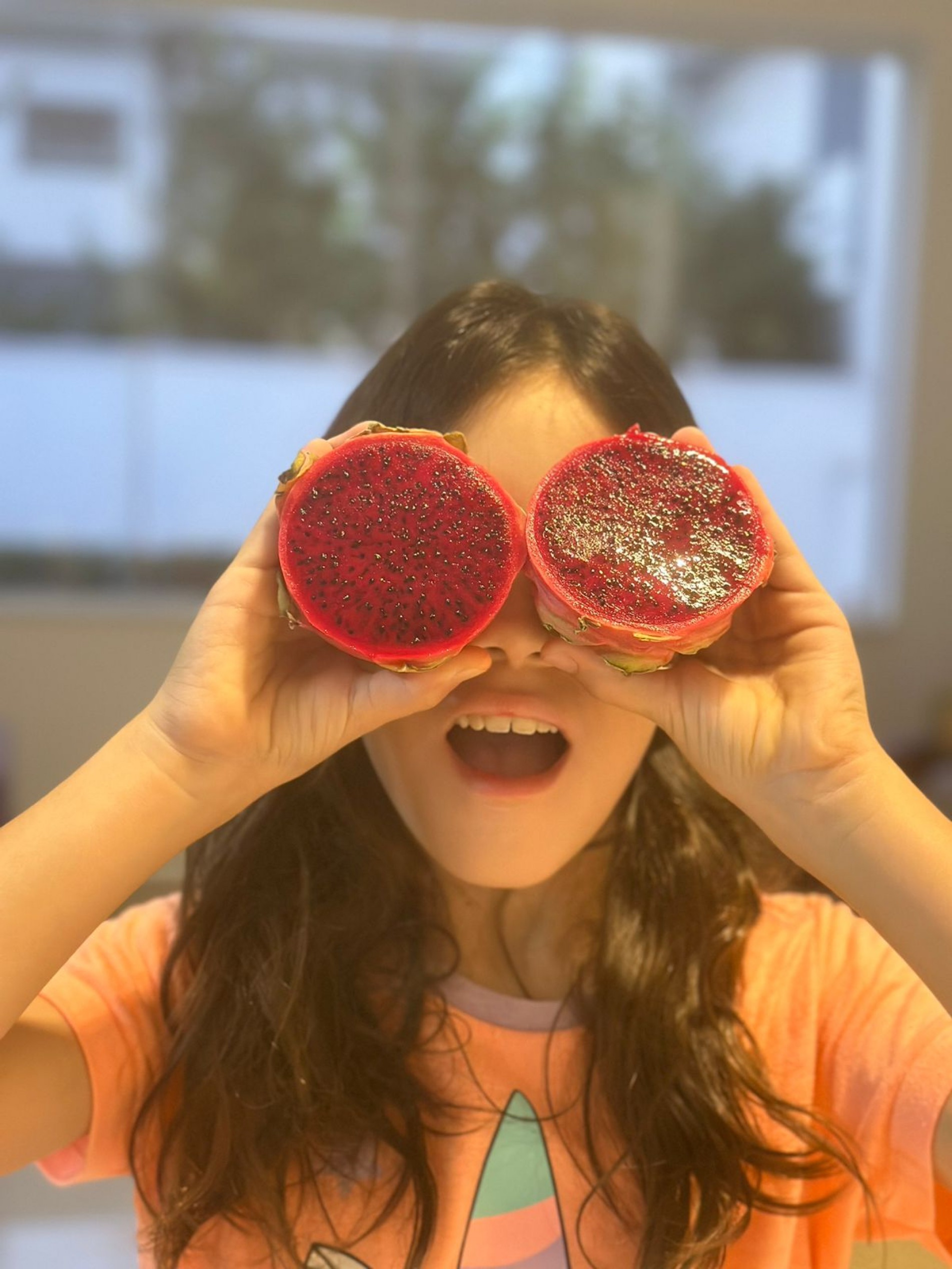 “Frutas são fontes de vitaminas e fibras e devemos comê-las todos os dias para garantir uma alimentação saudável”, comenta Ana Júlia C. Silva de 11 anos. A menina adora uva verde e, assim como o Miguel, não gosta de mamão. O melão também não está entre suas frutas preferidas e, como são muitos os sabores, cores e formatos das frutas, a menina conta que tem curiosidade por experimentar pitaya.