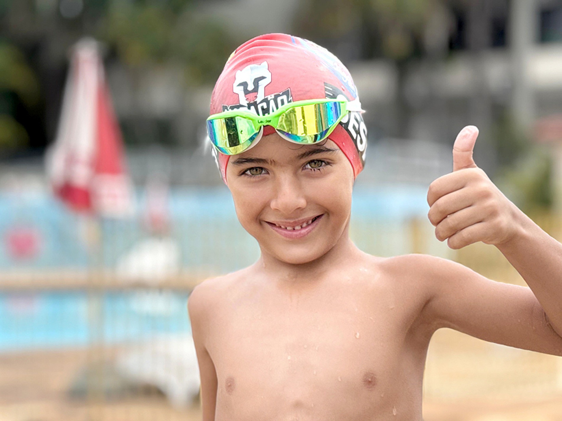 A nadadora Ana Julia Galli dos Santos, de 8 anos, sonha alto e sem medo, porque sabe que batalha muito para isso todos os dias. Também almeja grandes competições na natação e tem o incentivo da família e do irmão mais velho que é atleta de alto rendimento da equipe de natação Sesi. “Eu treino três vezes por semana, divido minha rotina de estudos, compromissos diários e depois de tudo feito, caio na brincadeira”, conta. O ambiente de treino do Sesi também lhe proporciona grandes brincadeiras, Aninha sabe brincar, treinar e se preparar para a próxima competição.