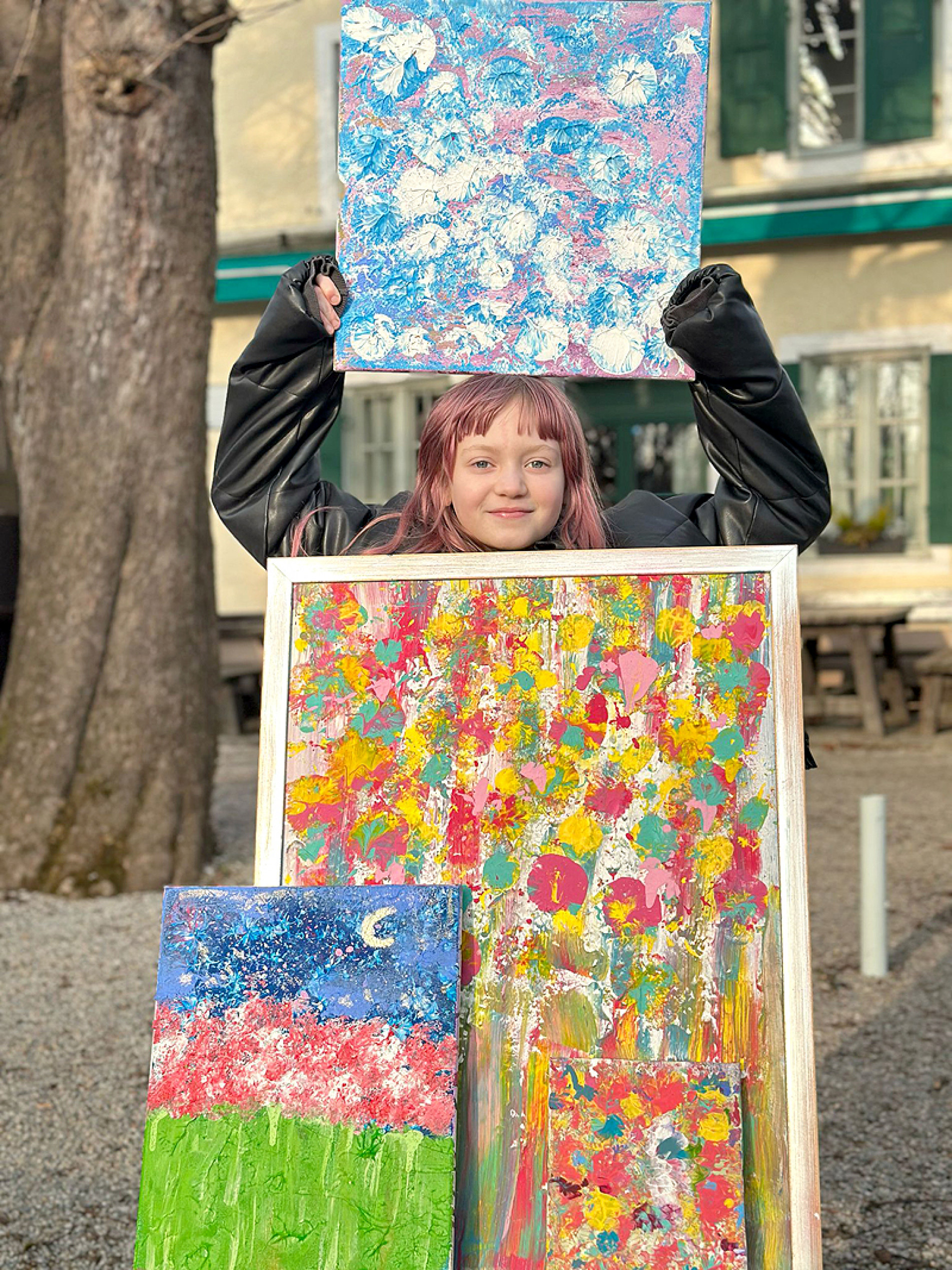 O talento da jovem artista logo começou a ganhar reconhecimento. Aos 7 anos, participou de sua primeira vernissage, sendo a única criança entre artistas adultos. Desde então, já esteve em três eventos do tipo e também expôs suas obras em feiras de arte na Alemanha.