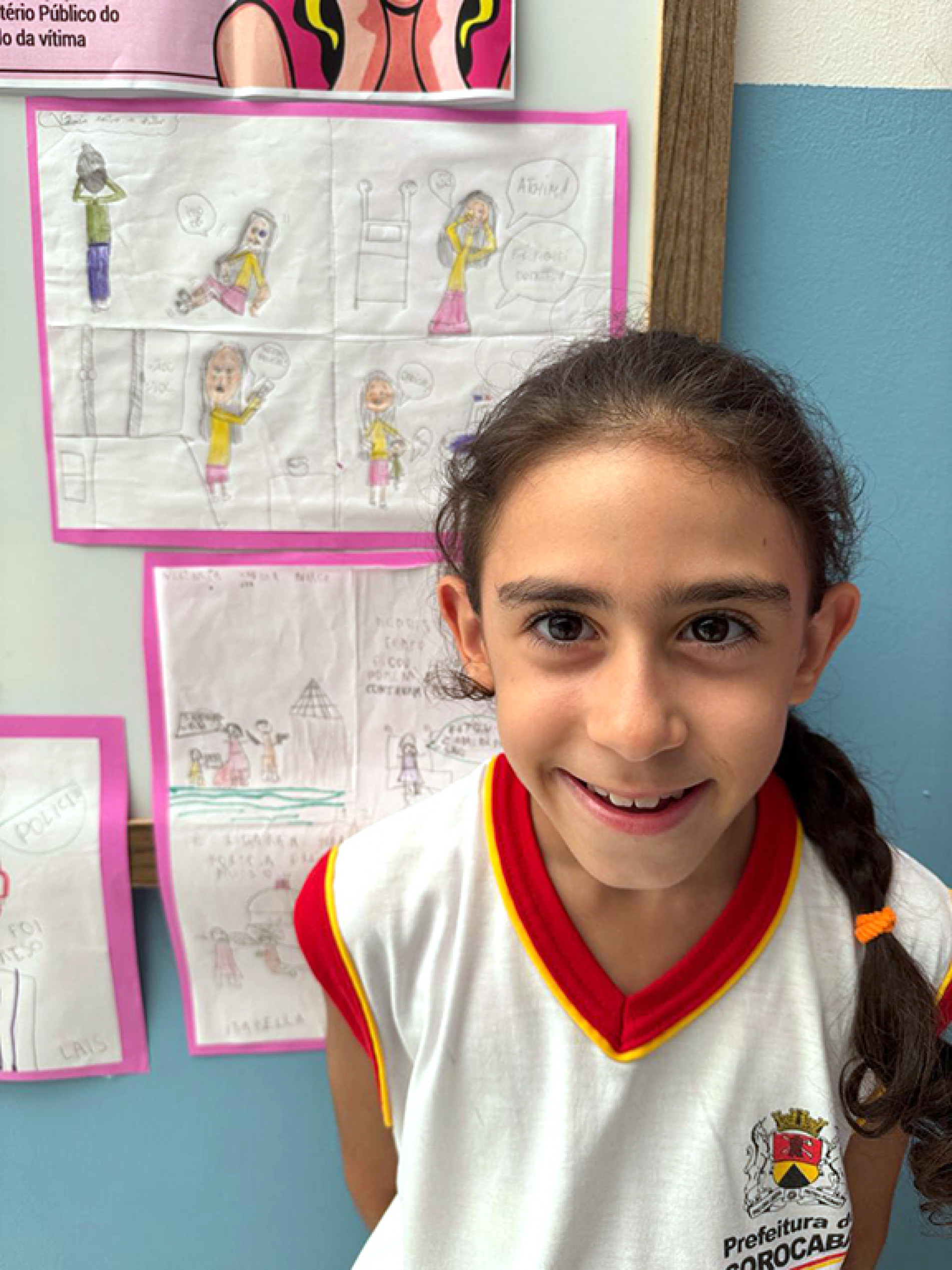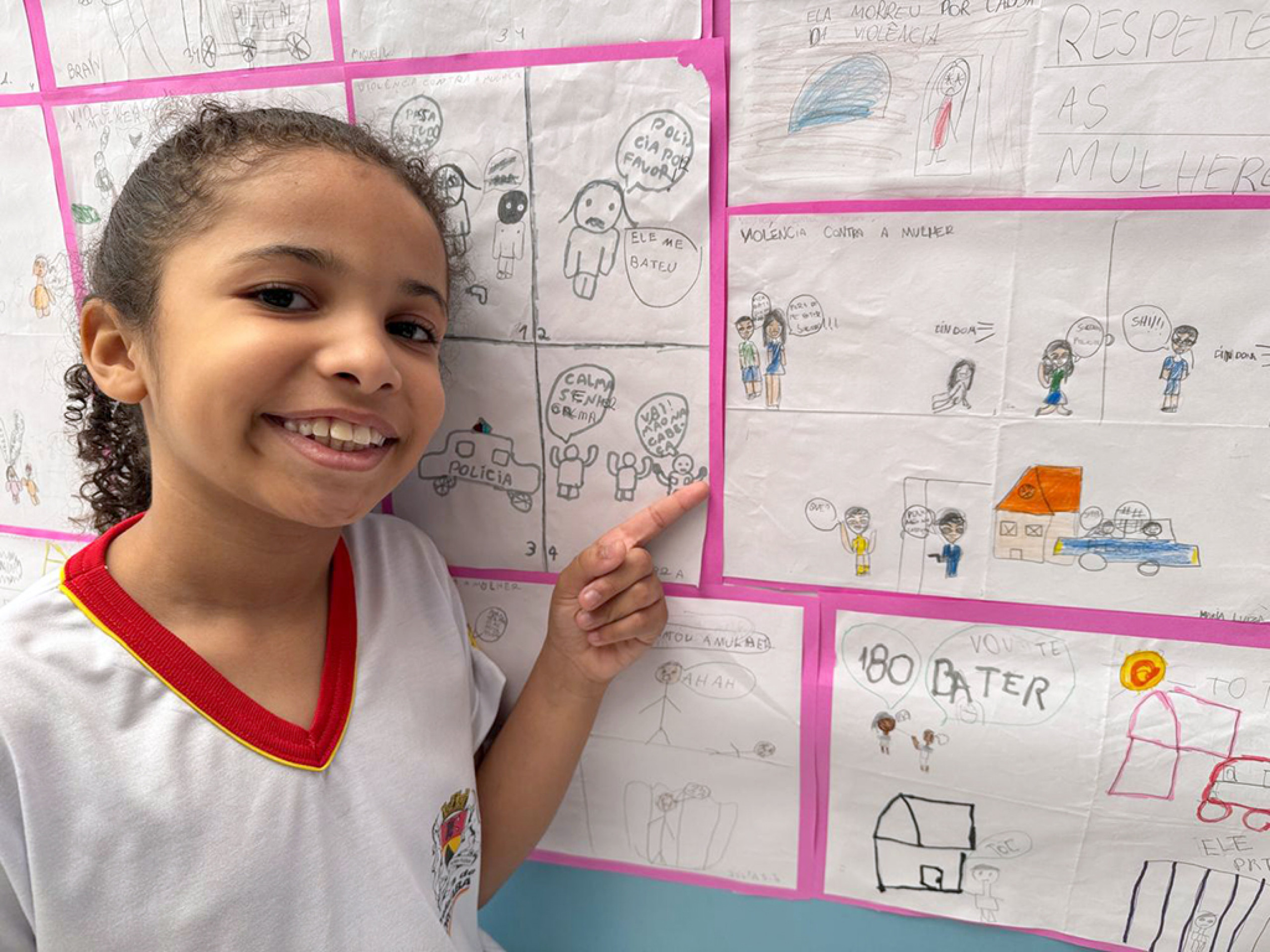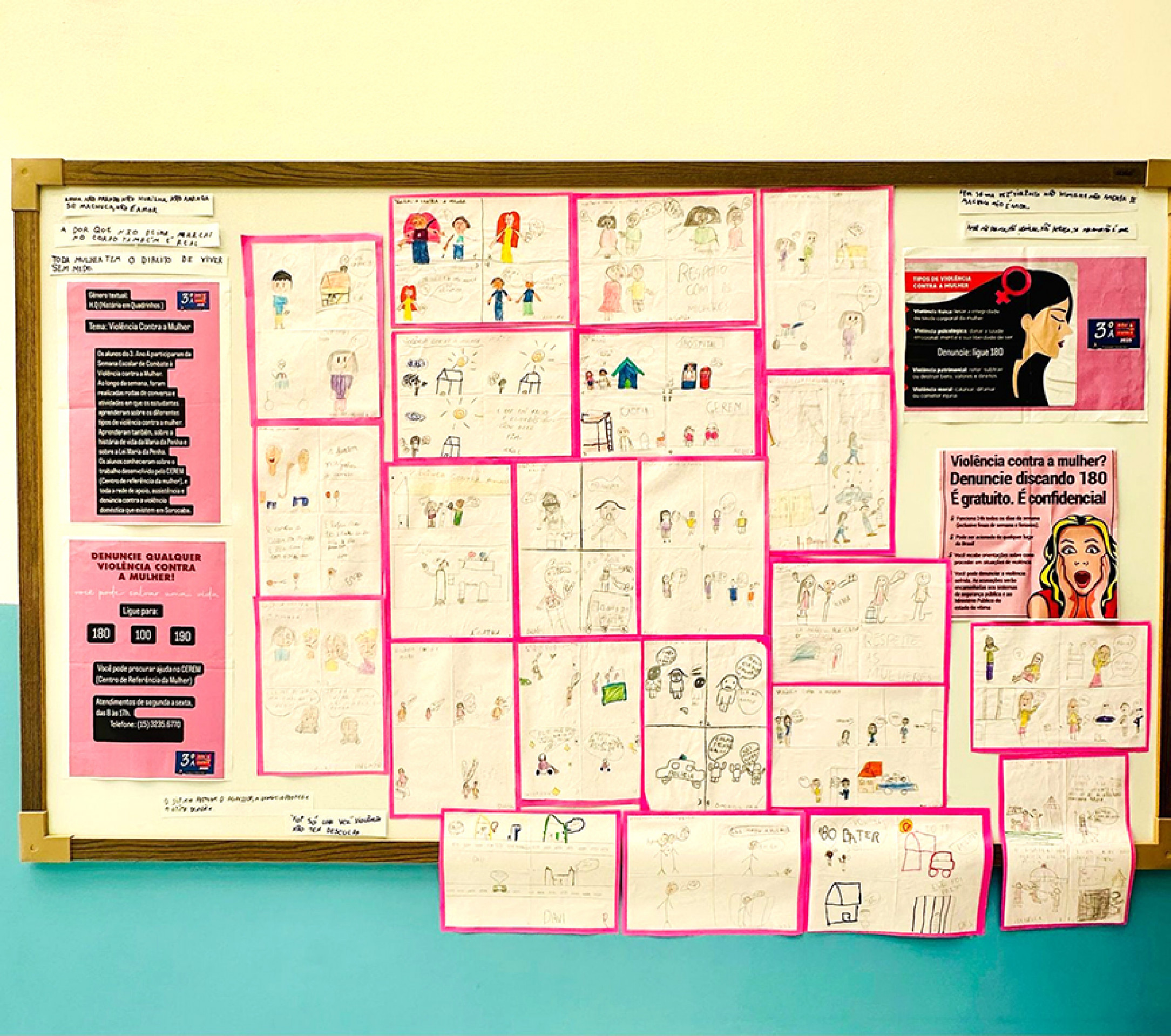 Como forma de concluir as atividades, os alunos criaram histórias em quadrinhos sobre o tema, expressando de maneira criativa o que aprenderam. Os educadores e os alunos também confeccionaram cartazes e um painel informativo sobre o tema, que ficaram expostos na escola, ajudando a disseminar o conhecimento sobre a violência contra a mulher entre toda a comunidade escolar.