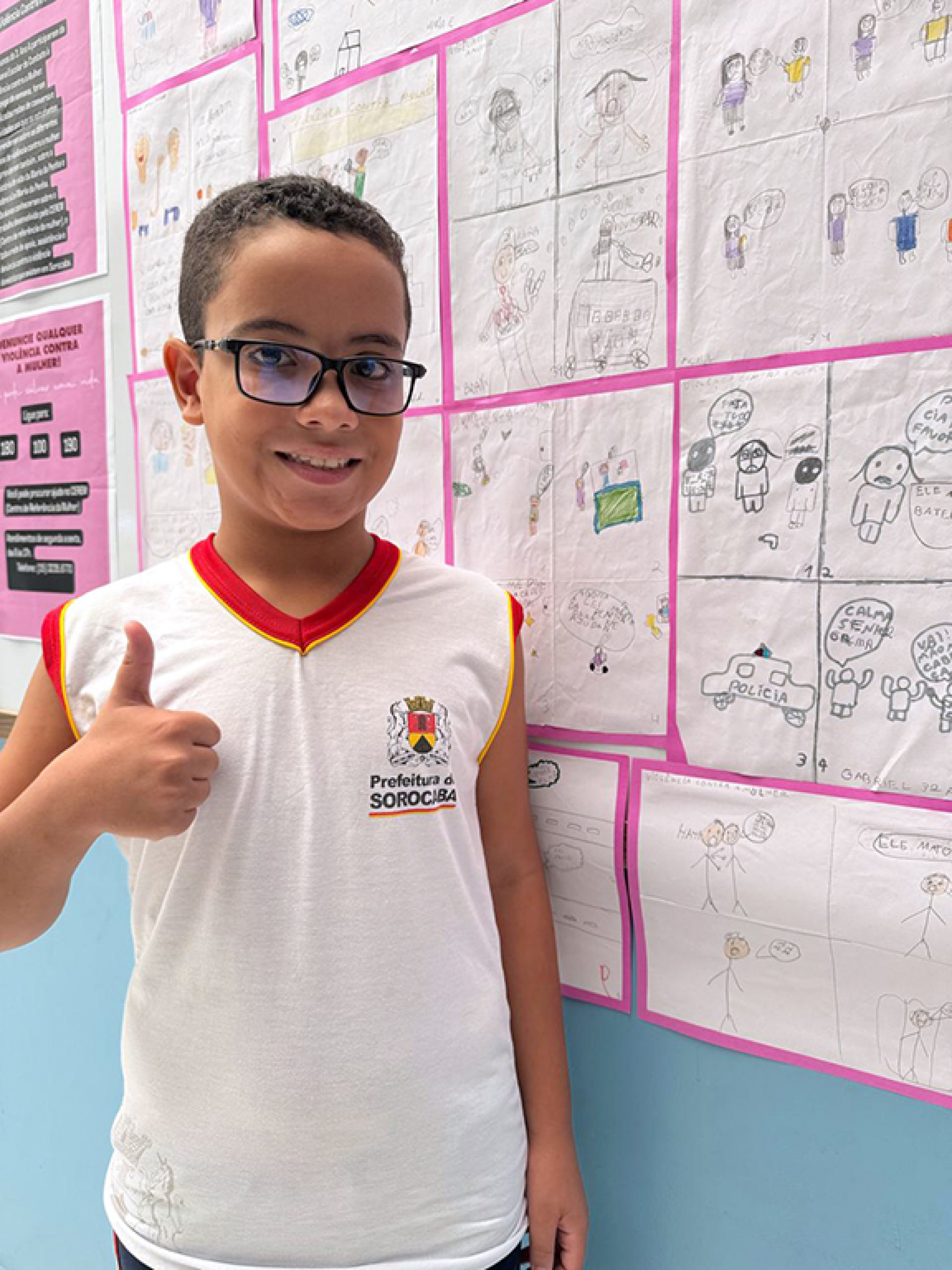 Gabriel Henrique, de 8 anos, aprendeu que bater em mulher é feio, muito grave, não é normal e já sabe a quem recorrer, as formas de ajudar, denunciar e diferenciar o que é certo do que é errado.
