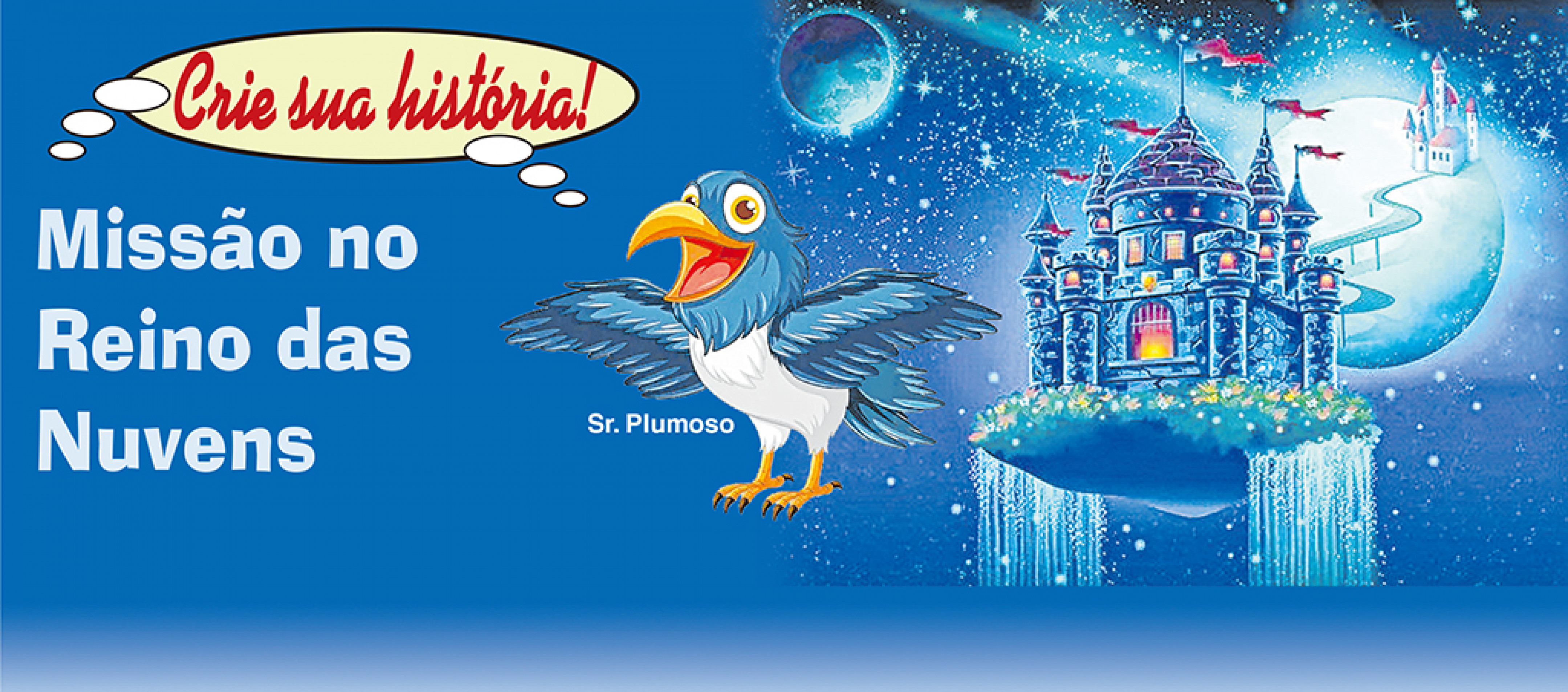 Instruções para Preencher a Sua História: Esta é a sua chance de se tornar o(a) autor(a) de uma aventura mágica nas alturas! Você vai completar a história escolhendo os nomes, os desafios e os momentos mais emocionantes da missão no Reino das Nuvens.