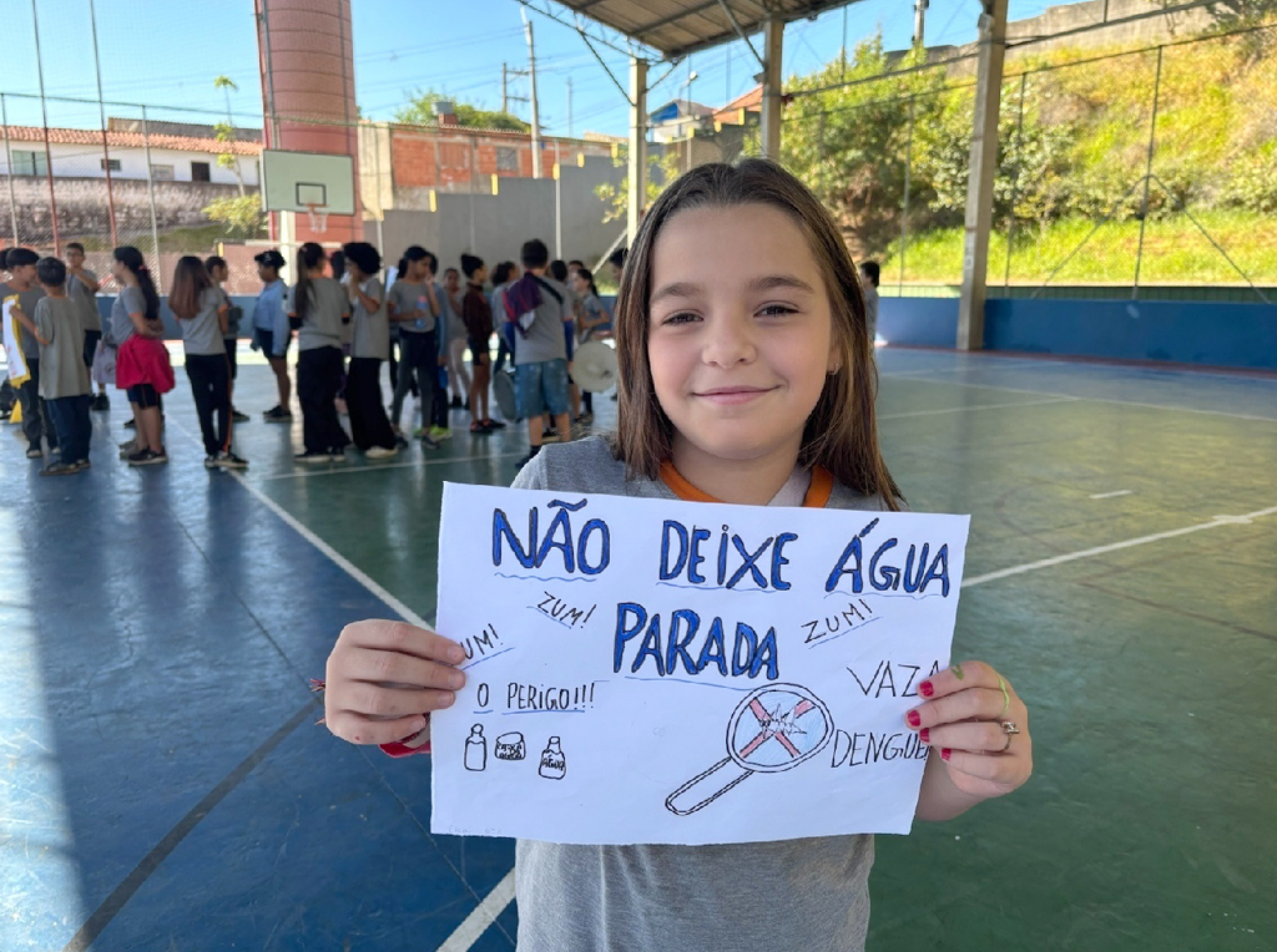 Pequenos gestos, quando praticados por todos, podem fazer a diferença, como explica Maria Vitória Maldonato Piovezan, de 10 anos: “Se cada um cuidar da sua casa, não deixar pratinho embaixo das plantas, nem pneus ou objetos com água parada, não vai ter dengue.” A amiga Brenda Gabrielly de Oliveira de Sousa, também de 10 anos, completou: “É legal avisar as pessoas sobre o que está acontecendo, para elas tomarem cuidado e seguirem as regras em casa para não causar a dengue.” Já Heloísa Camargo Batista, de 10 anos, aprendeu como o mosquito se reproduz: “Nós aprendemos bastante coisa. Não podemos deixar água parada porque a dengue coloca ovos na água”, contou.